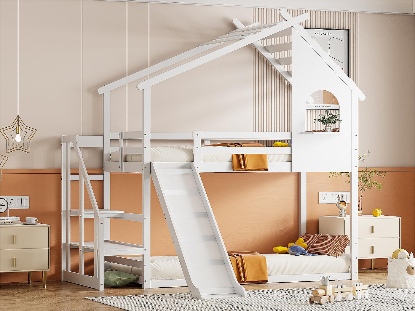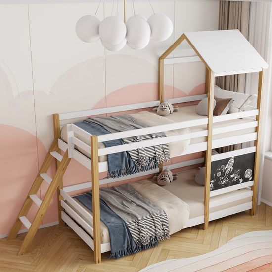Lit Superposé 140x200 Cm, Lit Enfant Avec Lit Gigogne Et Escalier Garde Corps Hauts Gris 94110231 Lit 90x200 Avec Porte Rabattable Lit Superposé Enfant 90x200 Cm Avec Escalier Et Barrière De Sécurité Lit Superposé 90x200 Avec Escalier Deux Tailles et Couleurs au Choix - Disponible en 90x200 cm et 140x200 cm ainsi qu'en blanc ou noir, ce lit enfant s'adapte parfaitement à l'espace et aux besoins de votre famille. Le lit inférieur dispose d'une petite porte rabattable, créant un espace de jeu et de détente polyvalent idéal pour se reposer, lire, jouer ou recevoir des amis. Cadre Unique en Forme de Maison - Offrez à votre enfant un lit cabane ludique et fantastique avec ce lit mezzanine métal au design unique qui stimule l'imagination. Principaux points forts · Cadre Unique en Forme de Maison: Offrez à votre enfant un univers magique avec notre Lit Mezzanine Métal au design cabane unique Sécurité Totale pour Enfants - Grâce à des barreaux de sécurité hauts sur tous les côtés du lit supérieur, votre enfant profite de nuits paisibles en toute sérénité. Le cadre en métal robuste supporte jusqu'à 150kg par niveau - une solidité à toute épreuve. L'échelle latérale avec main courante assure un accès sécurisé... Structure Métal Robuste et Durable - La structure en métal robuste de ce lit en fer garantit une excellente stabilité et une longue durée de vie, s'adaptant à toutes les décorations. C'est un ajout multifonctionnel parfait pour toute chambre.