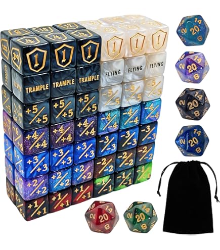 【Améliorez votre expérience MTG】- Ces dés sont parfaits pour les joueurs compétitifs et occasionnels. 36 dés 6 12mm picotés ''Artic Camo'' - Jeuxjubes ) et 18 dés de 12 mm compteurs (9 pièces - 1 ~ -6 compteurs et 9 pièces + 1 ~ + 6 compteurs), chaque lot est emballé dans une pochette en velours. Ils peuvent fournir un moment de jeu beaucoup intéressant et agréable pour vous et votre ami, adapté pour les réunions de famille, les réunions d'amis, les fêtes, etc. Que vous soyez dans un tournoi à enjeux élevés ou que vous profitiez simplement d'une soirée amusante avec des amis, nos dés vous permettent de rester concentré sur vos mouvements, pas sur le suivi des capacités Nous avons également 6 couleurs différentes au choix Plus besoin de plisser les yeux ou de retourner les cartes pour se souvenir de ce que chaque capacité fait 36 dés 6 12mm transparents clairs avec points blancs - Jeuxjubes Nous avons également 6 couleurs différentes au choix. Pack de 36 dés D6 * givré * BLEU, un jeu édité par Chessex Dés Capacités Magic GLMFAN Lot De 56 Dés De Compteur MTG, Compteurs De Dés MTG 1/+1 En Vrac, 8 Couleurs, 48 Jetons De Compteur De Vie à 6 Faces Et 8 Pièces D20 Pour Magic Dés Symboles Premier Coup Vigilance Vol Que vous soyez dans un tournoi à enjeux élevés ou que vous profitiez simplement d'une soirée amusante avec des amis, nos dés vous permettent de rester concentré sur vos mouvements, pas sur le suivi des capacités. 【Reconnaissance claire et instantanée】- Nos dés comportent des symboles uniques représentant des capacités clés telles que Lifelink, Reach, Flying, et plus encore, afin que vous puissiez suivre rapidement et facilement les effets du jeu sans avoir besoin de lire de petits textes. Les designs propres et audacieux rendent le jeu plus fluide et plus rapide, en particulier pendant les matchs intenses. 【Plus de confusion avec les dés à base de texte】- Contrairement aux dés traditionnels à base de texte, qui peuvent être difficiles à lire sous pression, nos dés à motifs rendent des capacités comme Deathtouch ou Indestructible instantanément identifiables en un coup d'œil. Plus besoin de plisser les yeux ou de retourner les cartes pour vous rappeler ce que chaque capacité fait.