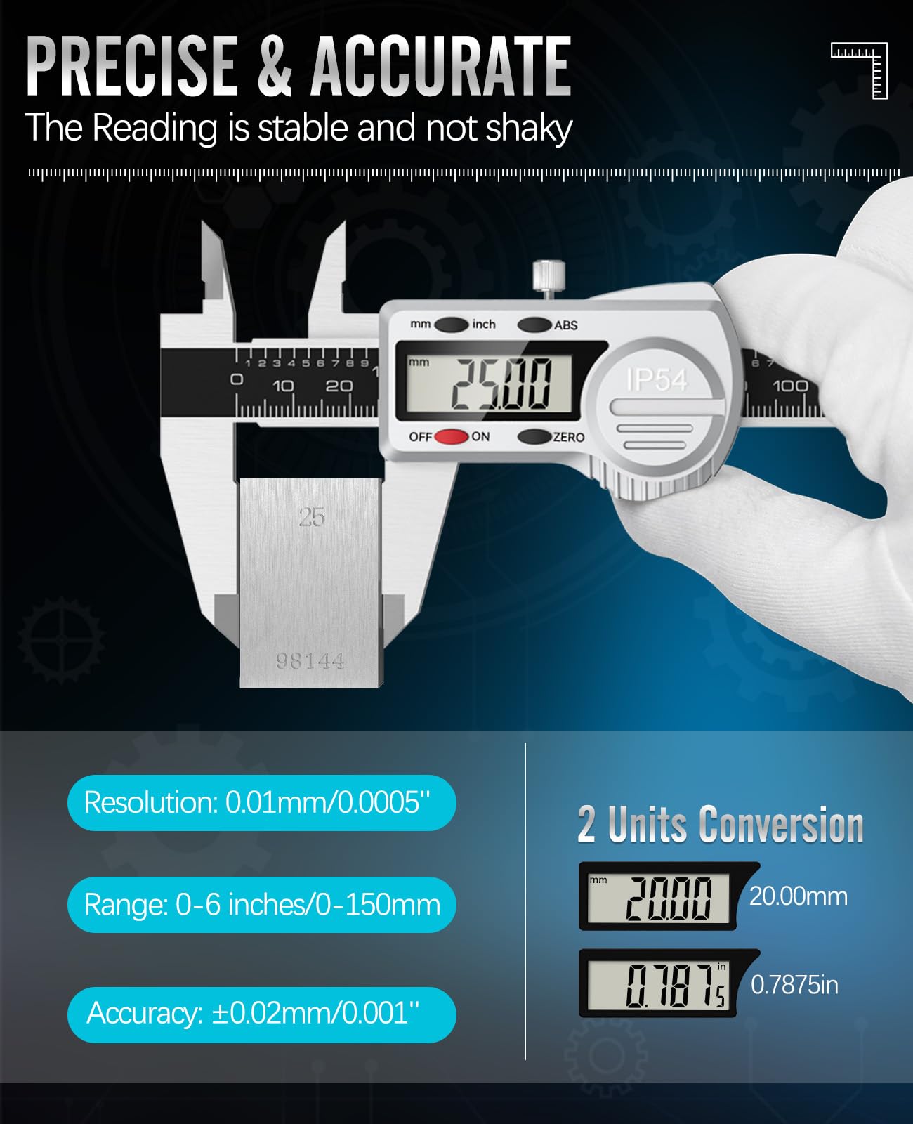 Diamètre Interne Mesurer le diamètre interne de l'objet cible à l'aide de deux mâchoires courtes. Vitesse de mesure maximale : 1,5 m / seconde ou 60 pouces / seconde S'il n'y a pas d'opération en quelques minutes, l'étrier numérique s'arrête automatiquement et l'écran LCD s'éteindra pour économiser l'énergie. Plage de mesure : 0-150mm / 0-6 pouces, Précision : ±0., 02mm / 0., 001 pouces 【2 unités Conversion et plage】 Notre étrier numérique a 2 modes de taille de mm et de pouces, et la plage de mesure: 0-6 pouces / 0-150 mm, précision: ± 0,001 pouce / 0,02 mm, résolution: 0,0005 pouce / 0,01 mm. Il convient très bien aux ingénieurs, aux charpentiers, aux ménages, aux professionnels, etc. De plus, l'étrier est fourni avec un boîtier résistant à la pression, aux chocs et aux chutes pour le rangement et le transport. 3) Changement d'unité d'affichage : un seul bouton permet de changer d'unité d'affichage (mm / pouces), ce qui permet de répondre à différentes exigences en matière de mesure. Et lorsque la roue du pouce se déplace, l'écran d'affichage restaure l'alimentation. Indice de protection IP : IP54 Après rallumage, l'étrier peut mesurer immédiatement sans remise à zéro. 【Réglage zéro et fermeture automatique et LCD】 La vis de serre de curseur permet une précision élevée. 【Matière IP54 Imperrofroof et en acier inoxydable】: étrier numérique en acier inoxydable avec protection de qualité IP54, cadre robuste et tête verrouillable, qui peut résister à l'eau, à la poussière, à l'huile et à la rouille. Vous pouvez également le réinitialiser à zéro avec le bouton zéro pour mesurer la section suivante. Description du produit Pourquoi choisir le pied à coulisse numérique Housolution ? 1) Structure entièrement métallique : résiste à la corrosion, à la rouille, à la rupture et à d'autres dommages quotidiens ; performances exceptionnelles et longue durée d'utilisation. Pied à coulisse numérique avec système absolu, mise à zéro superflue. Le système électronique se coupe automatiquement après env. 5 minutes et se réenclenche d'une simple poussée Règle en Acier Une règle en acier supplémentaire est fournie pour vous aider à mesurer avec plus de précision et de commodité. Le couvercle de la batterie est en métal avec de l'argent peint pour éviter la corrosion, vous permettant de faire glisser les étriers en douceur! Spécifications techniques Matériau : Alliage de zinc + acier inoxydable 1 x Mallette de transport Pied à coulisse digital inox Auto-Sleep : arrêt automatique sans aucune opération dans les 5 minutes. 5) Outil polyvalent : 4 types de mesures, un outil essentiel pour les professionnels et les bricoleurs. Pile : 1 x pile bouton lithium métal 3., 0 V 6) Outil supplémentaire : Fournit une jauge de remplissage supplémentaire, plus précise pour mesurer les écarts. Température de fonctionnement : 0-40℃ / 32-104℉ Arrêt automatique après 5 minutes d'inutilisation pour économiser l'énergie. Fonctionnement sur Piles Alimenté par une pile bouton longue durée de 3 V. Résolution : 0,01 mm / 0,0005 pouces / 1/128 pouces 4) Fonctionnement pratique : écran LCD clair, commande par bouton simple et alimentation par pile, pour obtenir rapidement et précisément tous les résultats. étrier Digital 150mm Affichage LCD IP54 Pied à Coulisse Digital Housolution 0-150mm - Acier Inoxydable, écran LCD, IP54 - Conversion Mm/pouce/fraction Mesure Précision Bricolage Pied à Coulisse ABS IP54 C'est la règle métallique parfaite pour les architectes, les rédacteurs, les ingénieurs et les artistes. Il permet aussi de lire directement la différence entre deux valeurs mesurées. Diamètre Extérieur Mesurer le diamètre extérieur de l'objet cible à l'aide de deux longues mâchoires. Pied à coulisse digital - PACD