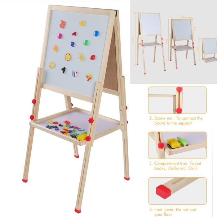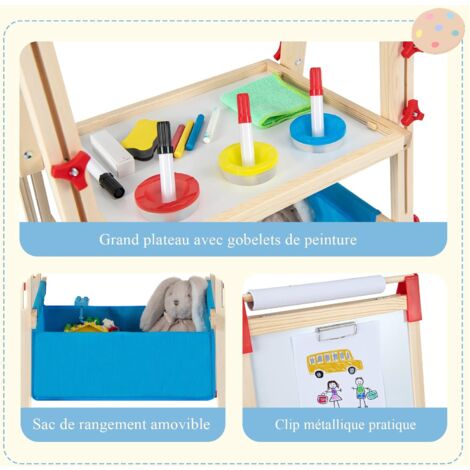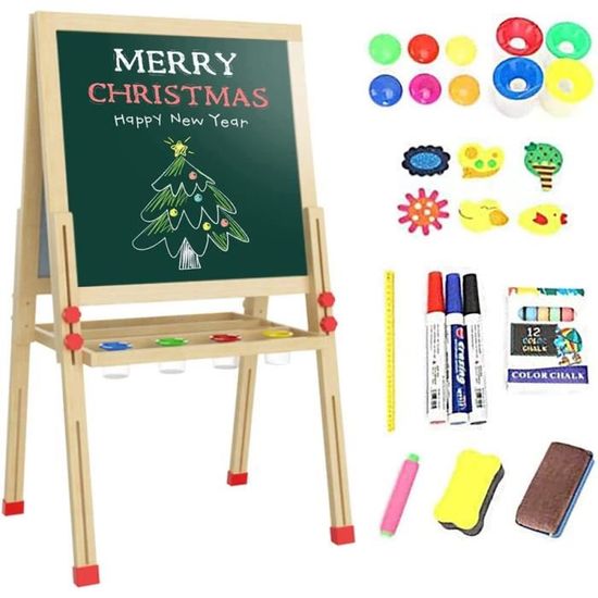 Grâce aux écrous en forme d'étoile spécialement conçus, il est parfaitement adapté aux enfants. Grand espace de rangement :]Un plateau supplémentaire avec 3 gobelets de peinture aide les enfants à organiser toutes les fournitures. Le sac de rangement amovible offre l'espace pour les livres ou les jouets Vos enfants peuvent dessiner non seulement sur le tableau noir avec de la craie sans poussière, mais aussi sur le tableau blanc et le papier avec un stylo. Chevalet avec Boîtes/plateau de Rangement et Godets de Peinture : Plus besoin de craindre que vos enfants ne salissent. Son adorable nœud attire immédiatement l'attention des enfants. Quatre godets de peinture sont également inclus, permettant à vos enfants de peindre confortablement sur le papier. La hauteur du chevalet est réglable de 83 cm à 118 cm, répondant aux besoins des enfants à différents stades de croissance, de 3 à 10 ans. Tableau Enfant,Chevalet d'art pour Enfants avec Tableau Blanc et Tableau noir Réglable en La peinture à l'eau utilisée est respectueuse de l'environnement. La surface du tableau blanc peut également servir de tableau de jeu et d'apprentissage des mathématiques. Sa structure triangulaire et ses pieds antidérapants assurent une prise en main sûre et sécuritaire pour les enfants. AIYAPLAY Chevalet peinture pour enfants, tableau enfant double face 3... Cadeau Enfant 4 Ans Et Plus Tableau Enfant Double Face Avec Hauteur Réglable Et Rouleau De Papier Remplacable Vert Tableau Double Face Leclerc Tableau Blanc et Tableau noir Adapté aux Enfants : Ce chevalet d'art en bois tout-en-un pour enfants est doté d'un cadre en bois lisse et sans bavures de haute qualité.