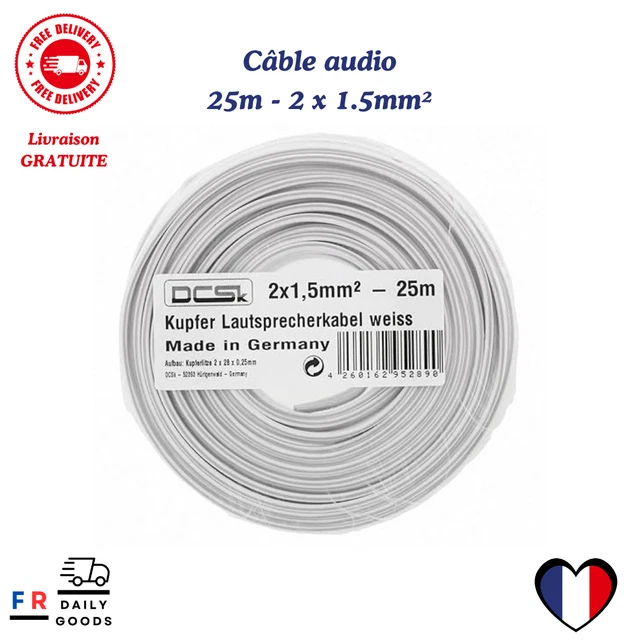 UTILISATION: Idéal pour connecter des systèmes Micro Hi-Fi, des systèmes Home Cinéma, en particulier des enceintes Surround. Cavi Hi-Fi In Bobina O Al Metro :: Cavi Speaker A Metro :: Ricable Custom SH65/10 - Bobina 10 Metri Cavo Di Potenza Esafonico Am Rcc 2 X 6 58mm Schermato 18mm Câbles enceintes au mètre, à la coupe FABRIQUÉ EN ITALIE: Ricable Premium Speaker 2., 5 est conçu, fabriqué et emballé entièrement en Italie. GEOMETRIE: Les conducteurs torsadés et directionnels de 2,5 mmq destinés à réduire les inductances constituent la base d'un projet de transmission du son efficace. à partir de 1 405 euros · 400% de performance par rapport à un câble standard*. · Conducteurs 2 x 7,6 mm2 Cuivre · Double diélectrique avec les technopolymères... Pour cette raison, nous sommes en mesure de fournir une garantie à vie sur notre produit. QUALITÉ: Fabriqué avec Pure PURE OFC à 99,999% en brins très minces et gaine très flexible et résistante. Câble Hifi Enceinte Faconet - Câble D'enceinte - En 100 % Cuivre OFC - 2 X 2,5 Mm² - Transparent Cable Haut Parleur 2.5mm