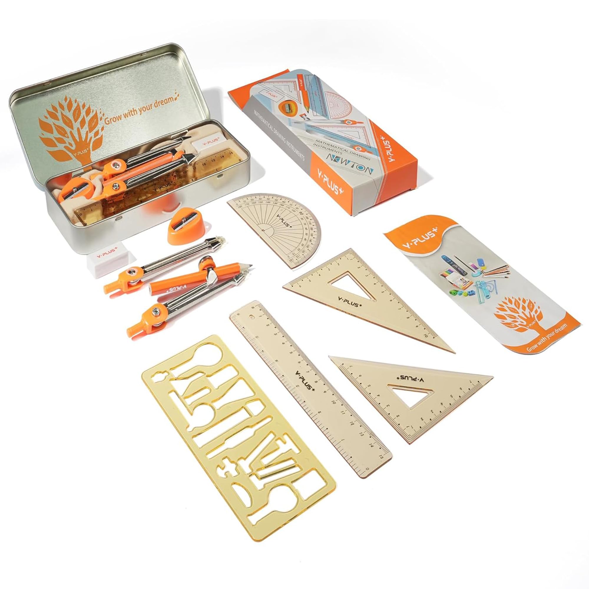 2 Pcs Boussole, Compas, Mathématiques Boussole, Compas Professionnel Ensemble Géométrie 7 Pièces Boîte Métal Ensemble De Mathématiques Géométriques Mathématiques, Compas Compas Enfant Ce1 C'est le cadeau parfait pour la famille et les amis Les rapporteurs assurent la précision des angles et des arrondis et améliorent la qualité de votre travail Peut être utilisé à l'école, au bureau, à la maison ou sur le lieu de travail Kit de mathématique 7 pièces avec , rapporteur et règle - Ensemble doutils de dessin compact dans un étui de rangement pour étudiants et professionnels au prix le plus bas à Ensemble de géométrie de boussole pratique : la boussole en métal ne se plie pas et la tête de boussole ergonomique est confortable à tenir dans votre main, offrant une expérience de dessin stable et précise sans glisser Cet ensemble de compas et règle est très adaptable, non seulement adapté pour une utilisation dans les studios, les bureaux et les maisons, mais il est également très approprié pour une utilisation par les mathématiciens, ingénieurs, architectes, artistes, designers et amateurs d'artisanat UTILISATIONS : Cet ensemble de rapporteur et de compas est parfait pour les enseignants, les concepteurs, les experts en mathématiques, les architectes, les charpentiers, les ingénieurs et les artistes de tous niveaux. Pratique et portable : l'outil de géométrie de boussole utilise une boîte en fer spécialement conçue pour un rangement et un transport faciles.