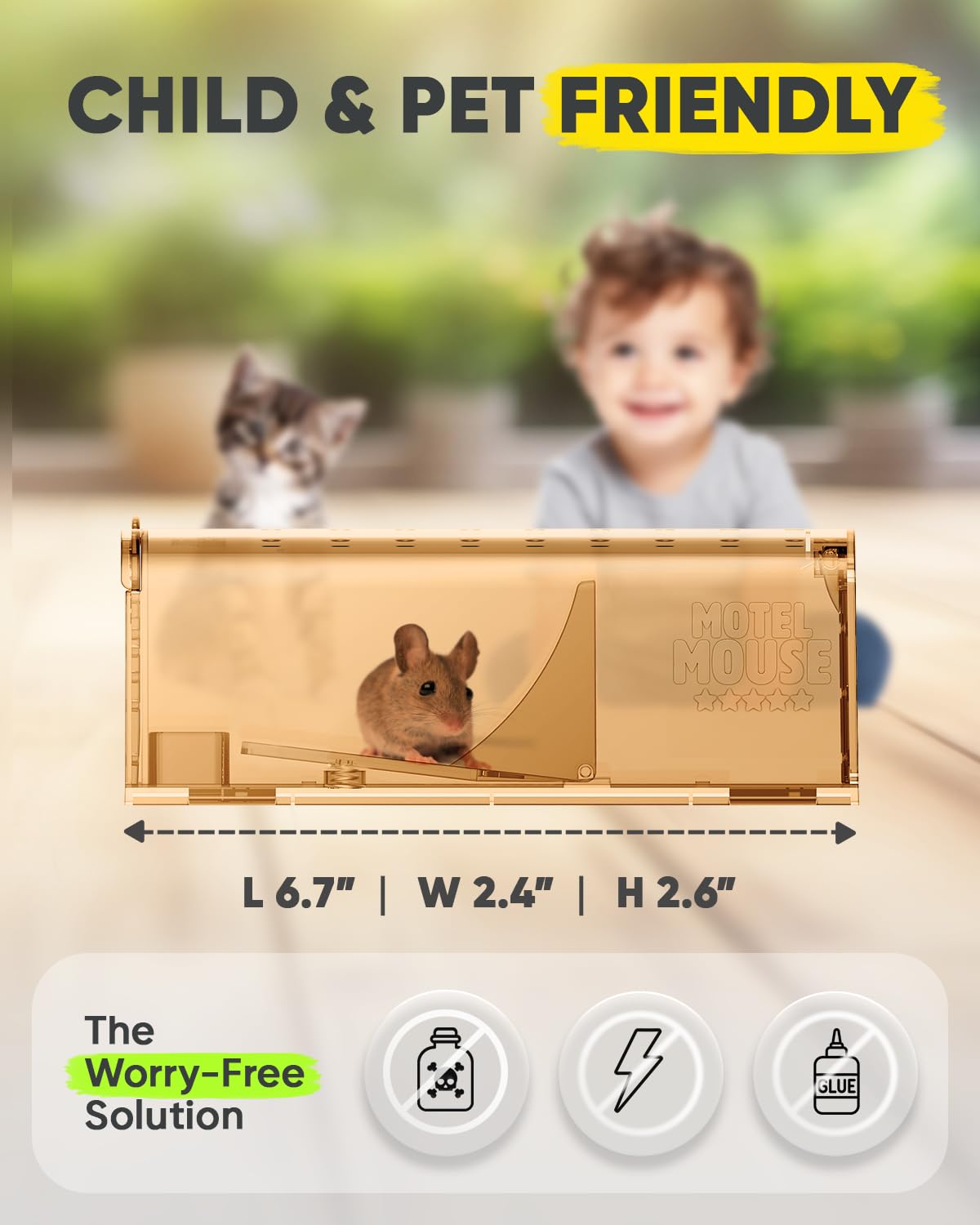 Piège à souris à capture vivante MOUSE OUT de Wilson | Wilson Control Piège Sans Cruauté Piège A Souris Vivante Pour Intérieur & Extérieur - Facile À Utiliser, Facile À Nettoyer Sifflet Ultrason Anti Gibier Après avoir relâché votre prise, nettoyez le piège avec de l'eau chaude et du savon et vous serez prêt pour votre prochaine capture. CAPTURE & LIBÉRATION SANS SOUCI - Nos Pieges à Souris sont conçues pour capturer les souris d'une manière sans stress et non cruelle. Vous obtenez tous les outils et connaissances nécessaires pour devenir un maître attrapeur en un rien de temps! Sans pièces qui pourraient pincer ou causer de l'inconfort, ce piège à souris est le choix idéal et insouciant pour votre foyer. Le kit complet est livré avec des trucs et astuces, un manuel d'instructions (français non garanti) et un guide vidéo en allemand et une brosse de nettoyage LIBÉRATION SANS CONTACT - Avec la Libération sans Contact de Motel Mouse, vous pouvez relâcher le rongeur sans jamais avoir à entrer en contact avec lui. CAPTURE & LIBÉRATION SANS SOUCI - Nos Pieges à Souris sont conçues pour capturer les souris d'une manière sans stress et non cruelle. Avec des trous d'air supplémentaires et beaucoup d'espace ces pièges sont confortable et une solution compatissante ÉCONOMIQUE - Une solution intelligente et durable pour le contrôle des rongeurs qui vous fait économiser de l'argent. SÛR AUTOUR DES ENFANTS & ANIMAUX DE COMPAGNIE - Installation facile qui ne prend qu'une minute et peut être utilisée autour des enfants et des animaux sans craindre de blessure accidentelle.