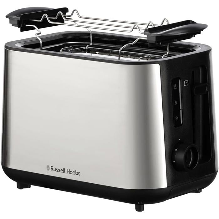 【Support Viennoiseries Amovible】 Le grille-pain 2 tranches est livré avec un support de maintien en acier inoxydable, vous permettant de réchauffer facilement des petits pains, des croissants ou des muffins directement au-dessus des fentes de grillage. Les fentes extra-larges de ce grille-pain permettent de facilement y insérer des bagels épais, des pains artisanaux ! Le guide de centrage automatique facilite le placement du pain au centre, parfait pour différentes épaisseurs de tranches. Le rangement intégré du cordon permet de ranger le cordon (environ 60 cm) de manière ordonnée. Avec une puissance de 750W et une fonction d'arrêt automatique, il peut rapidement et uniformément faire griller parfaitement 2 tranches de pain ! Appliances Grille-Pain 2 Fentes Extra Larges 6 Niveaux De Brunissage Le bouton DÉCONGELER réchauffera rapidement votre pain congelé. 【Design Compact】 Le tiroir à miettes amovible permet un nettoyage facile tout en évitant que les miettes ne tombent sur le plan de travail. Caractéristiques techniques : Puissance:750W [Remontée extra-haute / 7 niveaux de brunissage]Caractéristique unique offrant une remontée extra-haute du pain... Grille Pain 4 Tranches Grille-Pain 2 Fentes Avec Support Viennoiseries 7 Niveaux De Grille-pain Compact Tiroir Miettes Le levier de relevage élevé vous permet de retirer facilement et en toute sécurité les petits pains Un brunissement uniforme est assuré par des guides auto-centrants. Petits prix et livraison gratuite dès 25 euros d'achat sur les produits Aigostar. Commandez Aigostar Grille-Pain 2 Fentes avec Support Viennoiseries, 7 Niveaux de Brunissage, Fentes larges, 3 Fonctions (Toaster, Réchauffer, Décongeler), Tiroir Ramasse-Miettes, Noir Mat et Acier Inox, Delish Il propose une support viennoiseries pour chauffer des petits pains, des bagels et des croissants de manière pratique. Appuyez sur le bouton ANNULER pour annuler la cuisson en un clic. Le grille-pain de 750W grille les deux côtés du pain uniformément et rapidement, parfait pour griller ou réchauffer une variété de pains en quelques minutes. La taille du mini grille-pain est de 23 x 13,5 x 18 cm, avec une finition mate élégante et des accents en acier inoxydable, ce qui le rend facile à ranger n'importe où dans la cuisine