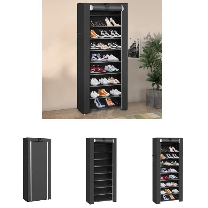 Étagère à chaussures verticale, 9-Organisateur de rangement de chaussures à niveaux, Étagère à chaussures étroite avec clôture supérieure et crochets, Détient 9 Des paires de chaussures, Stable et robuste, pour l'entrée, Placard Garantie de service sans souci : Des problèmes ? Qu'il s'agisse de conseils d'achat, de questions d'installation ou de problèmes d'utilisation, contactez-nous à tout moment. Tout ce dont vous avez besoin] : Ce porte-manteau multifonctionnel comprend 9 crochets, un tableau mémo, un sac de rangement et un range-chaussures Cette étagère à chaussures 9 niveaux organise jusqu'à 55 paires. Dimensions : 127x30x158cm. Structure métallique robuste avec connecteurs en plastique renforcé Aucun perçage n'est nécessaire - installation rapide et stable. Nous nous engageons à vous fournir une assistance sans faille, de l'installation à l'utilisation quotidienne, pour une expérience de stockage plus détendue. Porte-chaussures meuble de rangement modulable en acier - Noir - Maison Assemblage sans outil en quelques minutes. Idéale pour les entrées, les placards et les portes Base surélevée - Conception adaptée aux plinthes:Conçue avec des pieds surélevés, cette étagère à chaussures s'adapte parfaitement aux murs sans être bloquée par les plinthes. Veillez à retirer la pellicule transparente avant l'utilisation pour une adhérence optimale. 8 coussinets adhésifs pour une meilleure stabilité:Equipé de 8 coussinets adhésifs puissants à la base pour aider à fixer l'étagère sur des surfaces lisses comme le carrelage ou les planchers en bois. Sa conception verticale permet d'économiser de l'espace au sol et convient parfaitement aux espaces restreints tels que les entrées, les chambres ou les placards. Cadre en acier au carbone de première qualité - durable et peu encombrant:Construit en acier au carbone de haute qualité, ce support autoportant est robuste, résistant à la rouille et conçu pour durer. Stable, durable et facile à installer