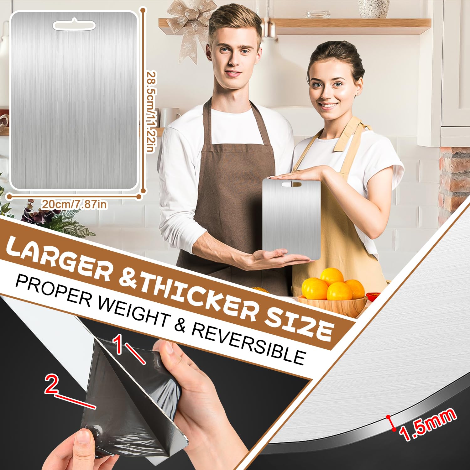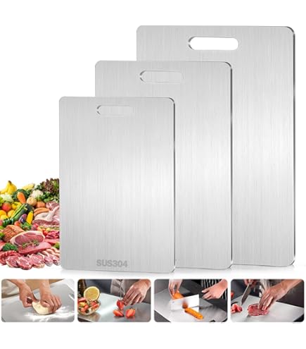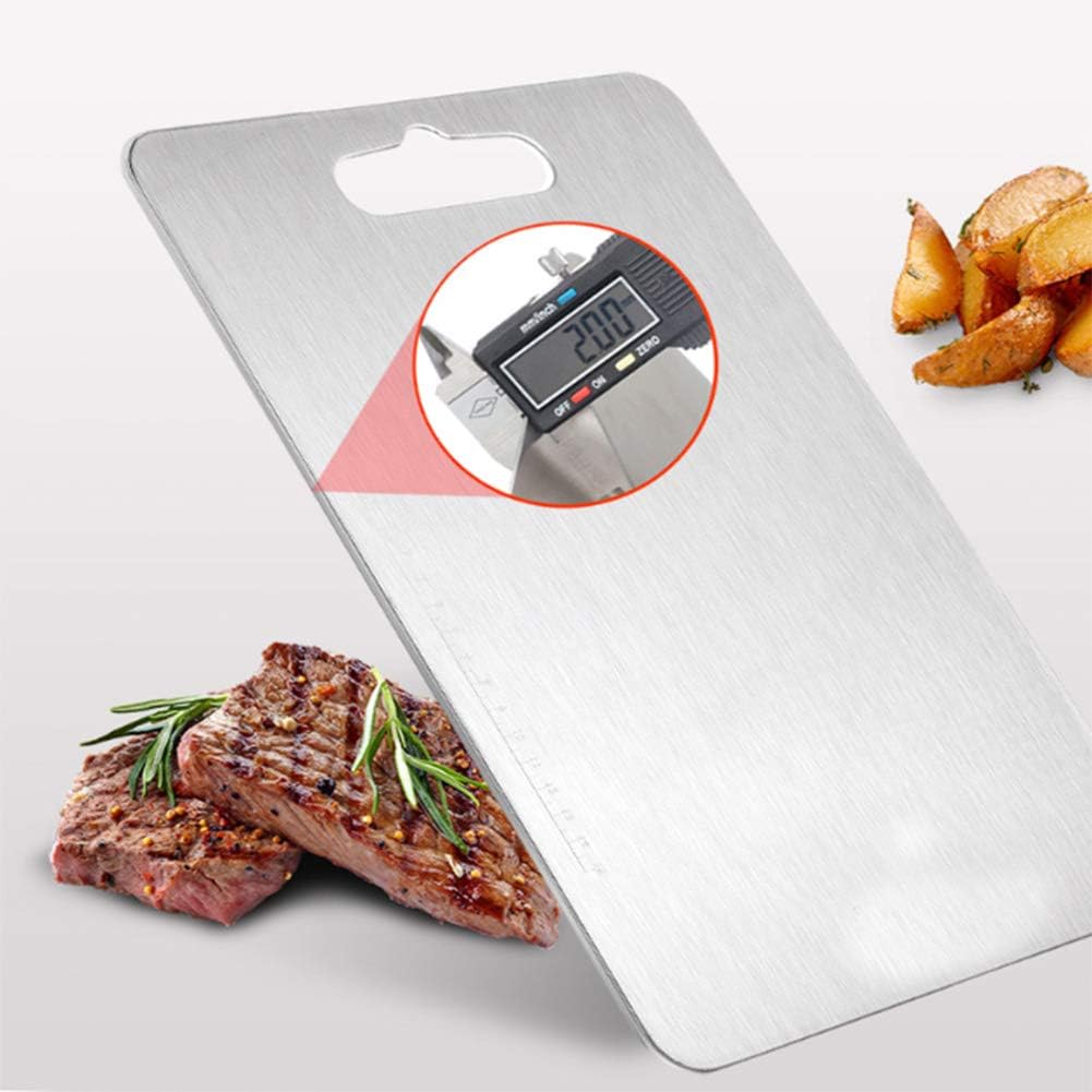 Planche à découper épaisse en acier inoxydable ❤️【Multifonctionnel】Cette planche de cuisine en acier inoxydable est idéale pour couper la viande, le poisson et les légumes. Planche A Decouper Inox Planche à Découper Double Face - FDIT - Acier Inoxydable Planche Double Face Alimentaire Une grande et une petite planche à découper répondent à différents besoins de transformation des aliments. ❤️【Satisfaction garantie à 100 %】Nous offrons un remplacement gratuit ou un remboursement complet pour tout problème de qualité concernant la planche à découper en métal. N'hésitez pas à nous contacter sur Amazon pour toute question. En alliage inoxydable, elles ne rouillent pas et ne libèrent aucun produit chimique dans vos aliments. Le pack comprend deux tailles : 34x23cm pour les grosses... INOXLM Planche à découper 50X56 avec pliage de 2 cm et rehausse de 4 cm Cette planche à découper antibactérienne n'absorbe pas les odeurs, permettant une utilisation longue durée sans odeurs, préservant ainsi votre santé. Que vous étaliez de la pâte à gâteau, pétrissiez du pain ou coupiez des fruits, des légumes et du pain, nos planches à découper sont à la hauteur de toutes vos tâches. ❤️【Facile à nettoyer】La surface lisse de la planche en inox se rince facilement à l'eau, ne laissant aucun résidu alimentaire.