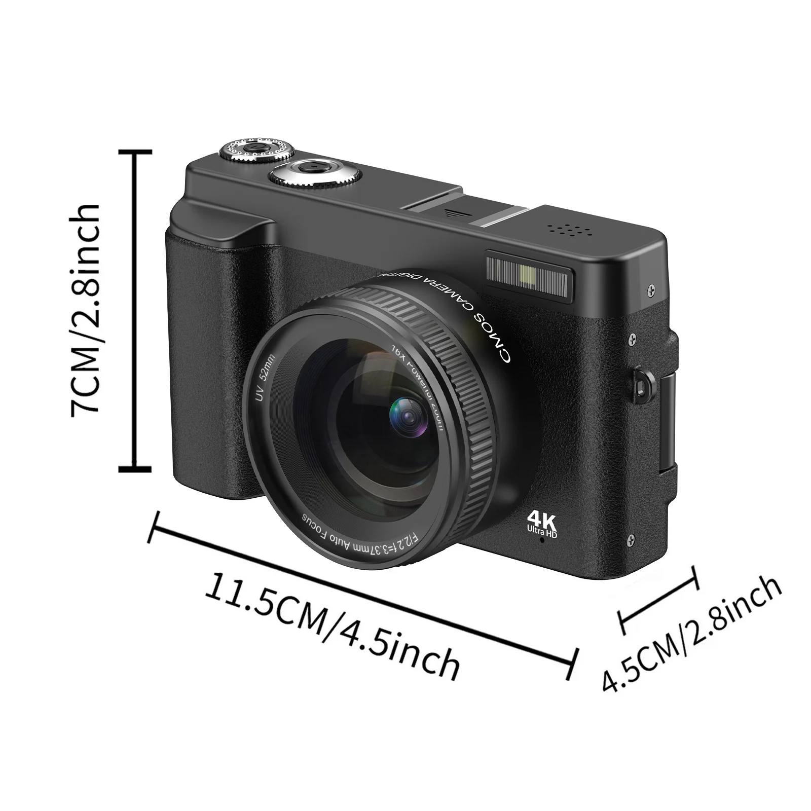 Après la mise sous tension, le bouton d'alimentation agit comme le bouton de retour. Appuyez sur le bouton de l'obturateur pour prendre une photo. Fonctions : 1. 4K 48 MP haute définition : cet appareil photo numérique permet de prendre des photos HD de 48 MP et d'enregistrer des vidéos en 4K AutoFocus HD 48MP : apportez votre appareil photo de voyage pour capturer le paysage que vous souhaitez en qualité haute définition et profitez de la qualité d'image délicate apportée par la caméra de mise au point Contenu de l'emballage : 1 x appareil photo 1 x dragonne 1 x câble de charge 1 x manuel d'utilisation Test de l'appareil photo numérique 4K : caméra vlogging Affichage transparent: dispose d' écran d'affichage TFT de 2,4 pouces qui est résistant aux rayures et , la caméra micro SLR assure une visibilité claire du contenu de prise de vue actuel même au soleil, offrant des images vives. Caractéristiques avancées: équipée de la mise au point automatique, du mode de beauté automatique, de l'exposition automatique, des filtres à plusieurs couleurs, des cadres colorés, des modes de prise de vue adaptatifs, une stabilisation électronique de l'image, offrant fonctionnement facile sans paramètres complexes. Appareil Photo 48mp Zoom 16x Appareil Photo Numérique 48MP 4K, Appareil Photo HD Avec Zoom Micro Appareil Photo Lorsque vous ne prenez pas de photo, le bouton de l'obturateur fonctionne comme bouton de confirmation. Type d'article : appareil photo numérique Matériau : ABS Format de fichier : JPG. AVI Résolution d'image : 48 M (maximum) Résolution vidéo : 4 K (maximum) Rapport d'aspect : 16:9 Rapport de zoom : zoom numérique 16x Balance des blancs automatique : prise en charge Type de batterie : batterie lithium-ion Capacité de la batterie : 600 mAh (livrée avec batterie intégrée) Prise en charge du stockage : prend en charge une petite carte mémoire jusqu'à 64 Go (carte mémoire non incluse) Lampe de poche : non prise en charge Interface de charge : type C Écran d'affichage : écran TFT 2,4 pouces (erreur de 0,1 pouce) Connexion WiFi : non prise en charge Langues prises en charge : anglais, chinois traditionnel, chinois simplifié, russe, japonais, français, allemand, coréen, italien, portugais, espagnol, hébreu CommentUtilisation : Insérez la carte de stockage (non incluse), appuyez longuement sur le bouton d'alimentation pendant 3 secondes pour allumer ou éteindre.
