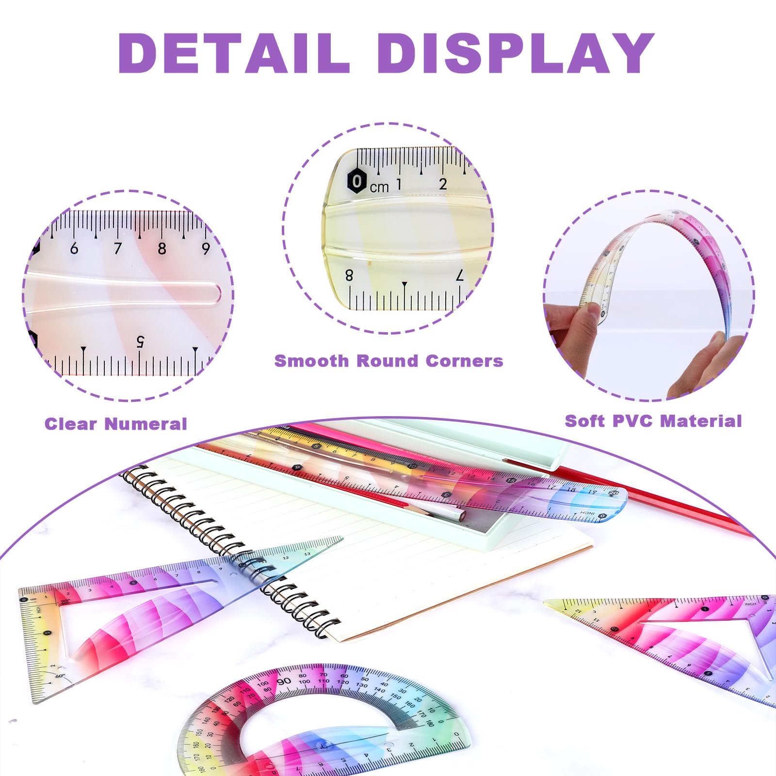 * Double système de mesure : chaque règle dispose à la fois de mesures métriques et d'échelles, ce qui en fait un bon choix pour les utilisateurs qui ont besoin de flexibilité pour mesurer et dessiner sur différents systèmes. Ajoutez une touche de fun à la trousse de vos enfants avec ce joli lot de 4 règles en plastique illustrées du personnage Stitch. Idéal pour l’école primaire et les devoirs à la maison, ce kit comprend une règle droite, un rapporteur, une équerre 45° et une équerre 60 * Design vibrant : le design dégradé coloré de ces règles les rend non seulement visuellement attrayantes, mais garantit également que les échelles de mesure sont faciles à lire, améliorant l'expérience utilisateur pour les artistes et les étudiants. 1 règle droite (longueur facultative)., 1 rapporteur. Pour une utilisation éducative : sans danger pour une utilisation dans les salles de classe, les maisons et les bureaux, ces règles sont un excellent choix pour les étudiants, les enseignants ou toute personne impliquée dans des activités créatives. Utilisation école Maison Lot De 8 Compas De Dessin En Plastique Comprenant Une Règle Droite, Une Lot Règles école 20cm *Pour la construction : fabriquées à partir de plastique flexible de haute qualité, ces règles sont incassables et peuvent être façonnées de manière flexible sans se casser, reprenant leur forme d'origine, ce qui est parfait pour mesurer des surfaces irrégulières. Design de couleur audacieuse : les couleurs dégradées vives attirent non seulement l'attention, mais aussi que les échelles de mesure sont faciles à lire, améliorant la facilité d'utilisation pour les étudiants et les professionnels. Flexibles et incassables : fabriquées à partir de plastique souple, ces règles peuvent être pliées sans se casser, ce qui les rend adaptées à une utilisation sur des surfaces inégales tout en conservant leur forme. * Utilisation sûre et pratique : ces règles souples peuvent être utilisées en toute sécurité dans les écoles, les maisons et les bureaux, ce qui en fait un excellent cadeau pour les amis, les enseignants ou les membres de la famille engagés dans des activités créatives ou éducatives. Maped Twist'n Flex - Règle souple plastique - 30 cm - Règles Taille : (au choix) 30 cm, 20 cm., Couleur : coloré. Ensemble de règles - VBESTLIFE - 4 pièces - Plastique souple - Couleur...