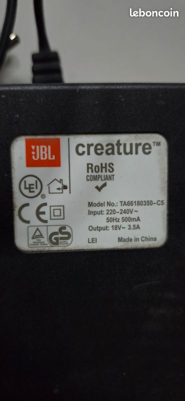 Tension de sortie (Output): 18V Adaptateur Secteur Alimentation Chargeur 18V pour Remplacement JBL Creature TA66180350-C5 puissance du câble d'alimentationTension de sortie (Output): 18V Longueur du câble 110cmContenu de la livraison: chargeur avec prise française / européenne, Marque: CARGADOR ESP. Longueur du câble: 110cm vhbw Bloc d'alimentation compatible avec AKG WMS470 Vocal Set/C5 Contenu de la livraison: chargeur avec prise française / européenne Les meilleures offres pour ★ JBL CREATURE TA66180350-C5 chargeur secteur 18V 3.5A officiel original sont sur Comparez les prix et les spécificités des produits neufs et d 'occasion Pleins d 'articles en livraison gratuite Alimentation 18V 110cm Top Chargeur * Adaptateur Secteur Alimentation Chargeur 12V Pour Enceinte Portable JBL Flip 6132A-JBLFLIP Adaptateur JBL Creature Marque. TOPCHARGEUR · Appareils compatibles. Téléphone cellulaire · Puissance. 18 Watts · Source d'alimentation. Câble électrique