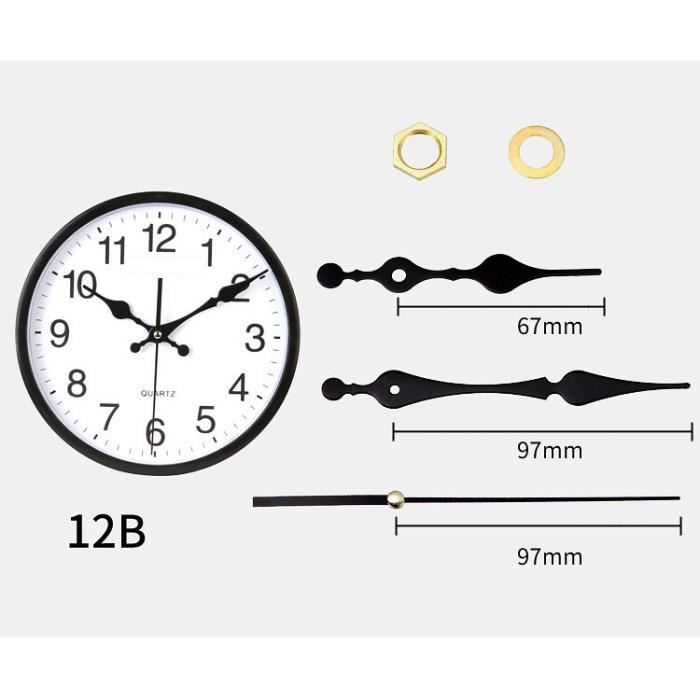 Cet ensemble de mécanisme d'horloge est conçu pour créer votre propre horloge unique qui ajoutera de la personnalité à n'importe quelle pièce. Personnalisez votre horloge en fonction de votre horloge avec le mécanisme d'horloge, vous avez le contrôle sur et de votre horloge, vous permettant de créer une pièce vraiment unique et unique. Idéal pour les esprits créatifs et les amateurs : que vous soyez artiste ou que vous profitiez simplement de projets, cet ensemble de mécanismes d'horloge est pour libérer votre créativité et créer une horloge unique en son genre. Mécanisme Horloge Mécanisme D'horloge Murale à Quartz WinTaim Mouvement D' horloge De Rechange Alimenté Par Batterie (longueur Totale De La Tige De 18 Mm, 1 Paquet D' Aiguilles Noires Mecanisme Horloge Murale Mouvement d'Horloge Silencieux, Mouvement de Montre Ultra-Silencieux, Kit de Mouvement à Quartz avec Aiguilles Noires, Adapté à Réparation d'Horloge Murale, aux Pièces de Rechange, etc Abonne-toi ici Le lien vers le produit et le prix : -3-s... Lot de 2 mécanismes d'horloge à piles avec aiguilles pour mécanisme d