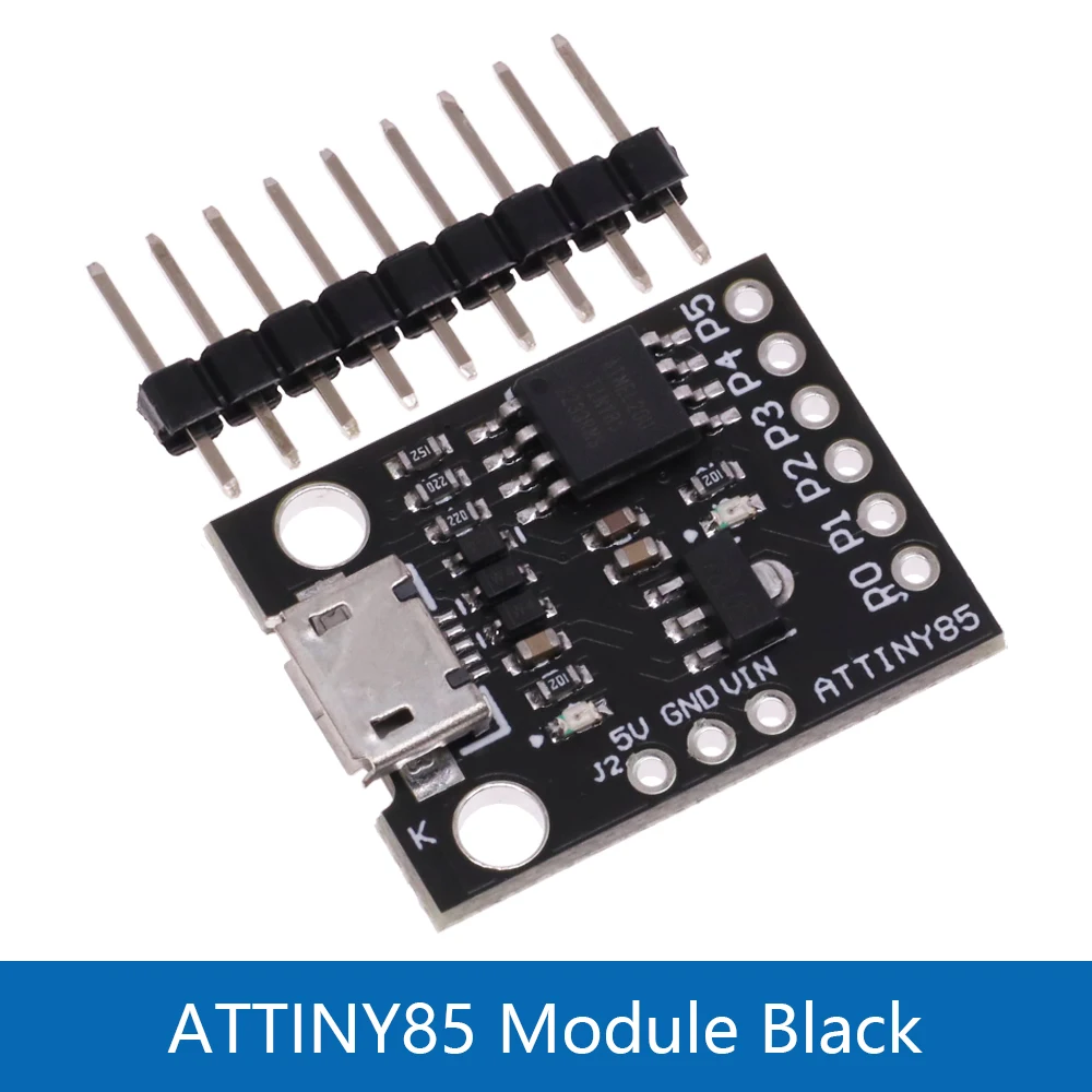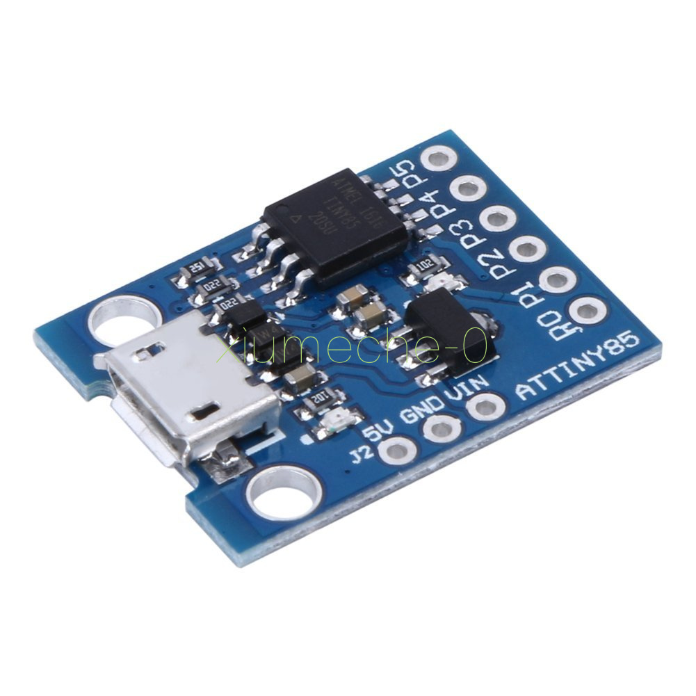 Régulateur 500m 5V embarqué Caractéristiques:Prise en charge de l'IDE Arduino 1., 0+ (OSX / Win / Linux)Alimentation via USB ou source externe - 5V ou 7 -35V (sélection automatique)Régulateur 500m 5V embarquéUSB intégré (et débogage en série)6 broches d'E / S (2 ne sont utilisées pour l'USB que si votre programme communique activement par USB, sinon vous pouvez utiliser les 6 même si vous programmez via USB)8k de mémoire flash (environ 6K après le chargeur de démarrage)I2C et SPI (vis USI)PWM sur 3 broches (plus possible avec le logiciel PWM)ADC sur 4 pinsVoyants d'alimentation et de test / d'état (sur la broche 0)Poids: 4gEmballage inclus:5 x conseil de développement USB intégré (et débogage en série) ATTINY85 Placa de desarrollo Kickstarter Digispark para Arduino USB 6 broches d'E / S (2 ne sont utilisées pour l'USB que si votre programme communique activement par USB, sinon vous pouvez utiliser les 6 même si vous programmez via USB) Digispark ATtiny85 Carte de développement Carte Développement Digispark ATTINY85 Paquet 8 - Carte De Développement Micro ATTINY85 Pour Ardu37IIC I2C USB Lot Cartes Développement ATTINY85 Es handelt sich um Digispark Rev.3 Module, also die bekannten Clone, bei denen Pin 5 nicht ohne weiteres als I/O-Pin genutzt werden kann, da er mit Reset belegt ist