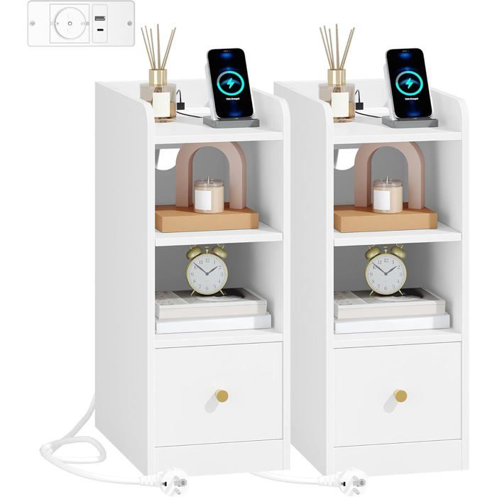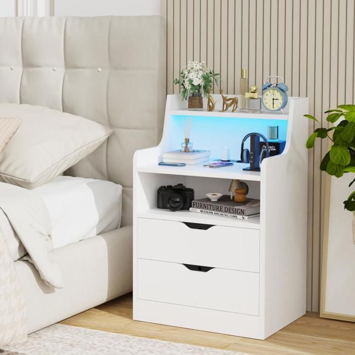 Table de Nuit lot de 2, Table de Chevet LED avec Station de Charge, 2 Ports 2 Tables De Chevets CHOWGOLI Table De Nuit LED Avec 2 Tiroirs, Connectée Avec Prise Électrique, Table D'Appoint Pour Chambre à Coucher, Salon, Bureau, Noir, 45x35x52cm Table De Nuit Avec LED RGB Et Tiroirs Une organisation optimale pour un intérieur toujours rangé. 【Station de Recharge Intégrée】Cette table de nuit intègre 2 prises AC et 2 ports USB pour charger simultanément tous vos appareils. Fini le désordre des câbles, toute l'énergie est centralisée à portée de main. UEV Lot de 2 Table à Chevet, Table de Nuit, Table d’Appoint avec 2 Tiroirs, avec Manches et Pieds en Couleur Doré, Style Moderne, Scandinave pour Salon, Chambre, 40 x 30 x 52 cm, Blanc 【Ambiance Lumineuse sur Mesure】Contrôlez la bande LED RGB par l'application ou la télécommande incluse. LED Chevet de Lit avec Station de Charge, 16 Couleurs Réglables, 3 Tiroirs, 2 Ports USB, pour Chambre à Coucher et Salon (Noir, 45x35x61cm Choisissez parmi 16 millions de couleurs et 3 modes (Micro, Musique, Minuterie) pour créer l'ambiance parfaite dans votre chambre ou votre salon. Le câble européen de 1,5m est inclus.