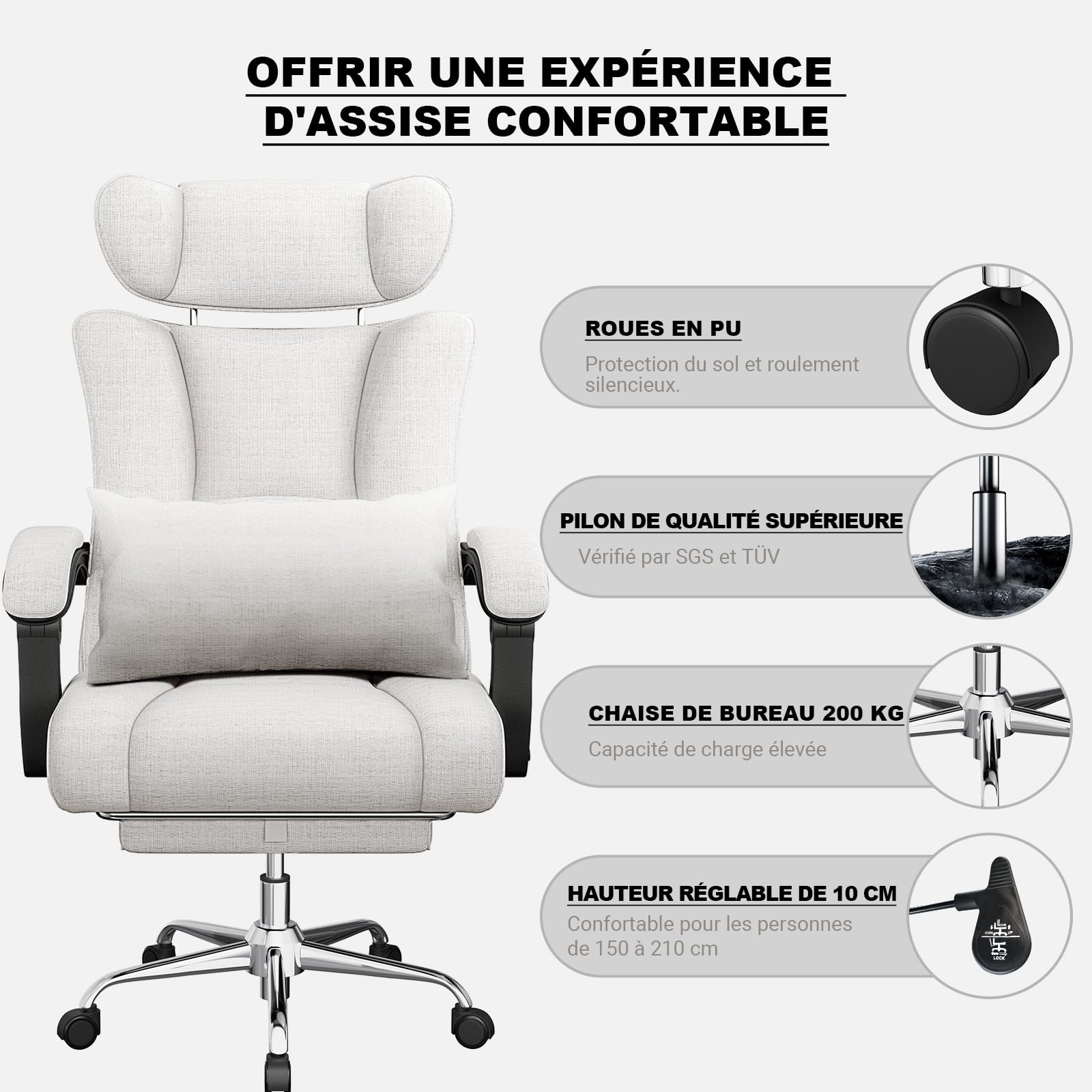 La structure double couche avec un soutien lombaire indépendant épouse parfaitement la colonne vertébrale pour soulager efficacement les douleurs dorsales. Son dossier haut de 78 cm offre un soutien optimal pour la tête, le cou et le dos. 【𝐂𝐨𝐧𝐬𝐞𝐢𝐥 𝐩𝐫𝐚𝐭𝐢𝐪𝐮𝐞】Les accoudoirs et accessoires du piètement se trouvent à l’intérieur du dossier. Recouverte d’un tissu respirant de qualité supérieure, elle reste douce et confortable toute l’année, même après de longues heures d’utilisation sans sensation de chaleur. 【𝐂𝐡𝐚𝐢𝐬𝐞 𝐝𝐞 𝐛𝐮𝐫𝐞𝐚𝐮 𝐚𝐯𝐞𝐜 𝐟𝐨𝐧𝐜𝐭𝐢𝐨𝐧𝐬 𝐝𝐞 𝐫é𝐠𝐥𝐚𝐠𝐞 𝐦𝐮𝐥𝐭𝐢𝐩𝐥𝐞𝐬】Grâce à son inclinaison jusqu’à 120° et son système de verrouillage 3 positions, cette chaise s’adapte parfaitement à vos différentes postures de travail, d’étude, de lecture ou de détente. Accoudoirs rabattables, dossier inclinable (90-120°), hauteur réglable, et rotation 360°. Rembourrage épais, cuir PU respirant, roues silencieuses. Certifiée... Fauteuil bureau filet à roulettes, accoudoirs réglables Le rembourrage double couche en mousse haute densité offre un confort durable sans affaissement. En cas de problème, nous remplaçons gratuitement les pièces défectueuses. 【𝐒𝐮𝐩𝐩𝐨𝐫𝐭 𝐜𝐥𝐢𝐞𝐧𝐭 𝐩𝐫𝐨𝐟𝐞𝐬𝐬𝐢𝐨𝐧𝐧𝐞𝐥】BASETBL est une marque leader mondialement reconnue dans le domaine des sièges ergonomiques. 【𝐑𝐨𝐮𝐞𝐬 𝐬𝐢𝐥𝐞𝐧𝐜𝐢𝐞𝐮𝐬𝐞𝐬 𝐞𝐧 𝐜𝐚𝐨𝐮𝐭𝐜𝐡𝐨𝐮𝐜 – 𝐒𝐭𝐚𝐛𝐥𝐞𝐬 𝐞𝐭 𝐚𝐧𝐭𝐢-𝐫𝐚𝐲𝐮𝐫𝐞𝐬】Équipée de roulettes en caoutchouc écologique et silencieuses, cette chaise glisse doucement sur parquet, carrelage, moquette ou sol stratifié sans laisser de traces ni faire de bruit. Chaise Réglable 3 Positions Accoudoirs Rabattables BASETBL Chaise De Bureau Ergonomique, Fauteuil De Bureau En Maille Avec Fauteuil Bureau Ergonomique Fauteuil de Bureau Synchrone NEIVA - Confortable et Ergonomique Tissu Chaque angle offre un soutien ciblé et une relaxation complète. Votre satisfaction et votre confort sont nos priorités absolues. Les accoudoirs rembourrés sont rabattables à 90°, ce qui permet de gagner de la place et rend cette chaise idéale pour un bureau, un home office ou une salle de réunion. 【𝐂𝐡𝐚𝐢𝐬𝐞 𝐝𝐞 𝐛𝐮𝐫𝐞𝐚𝐮 𝐜𝐞𝐫𝐭𝐢𝐟𝐢é𝐞】Notre chaise de bureau respecte la norme européenne pour le mobilier de siège domestique EN12520 et a passé tous les tests nécessaires, vous garantissant une utilisation en toute confiance. Cette chaise confortable est idéale aussi bien pour le bureau que pour le télétravail à domicile. Avec plus de 20 ans d’expérience, nous proposons des solutions de sièges de haute qualité, accompagnées d’une garantie de 2 ans dépassant les standards du marché.