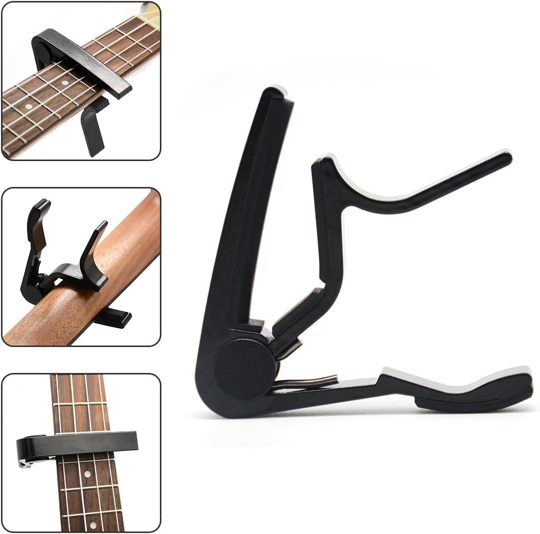 Dimensions du colis (L x l x H) : 13 x 9 x 1,3 cm. Largement conçu : conçu pour les guitares acoustiques et électriques, il s'adapte également à d'autres instruments, tels que le ukulélé, le banjo, la basse et la mandoline Caractéristiques : Matériau : alliage d'aluminium., Couleur principale : noir. ♫ Haute qualité : matériau en alliage d'aluminium de haute qualité et coussinet beaucoup plus épais pour protéger vos guitares contre les dommages. Polyvalent : ce capodastre peut s'adapter à votre guitare acoustique et électrique, banjo, mandoline ou ukulélé. ♫ Conçu pour les guitares acoustiques et électriques à 6 cordes, convient également à différents instruments (ukulélé, banjo, basse, mandoline). - De petite taille, pratique et portable. Capodastre Guitare Acoustique Capo Guitar avec 6 Médiators, Capot Guitare Pour Electrique Folk Classique Ukulele Capot Guitar Alliage Couleur Bois Poids du colis : 50 g. Compatible avec : guitare/basse/ukulélé., Type : capodastre. - Fonctionne avec une seule main et tient confortablement dans votre main. Anpro Capodastre de Guitare Et 6pcs édiators Electrique Acoustique... Capodastre De Guitare Capodastre Pour Guitare AROMA AC-30 Capo De Guitare Pour Acoustique Guitare Et Guitare éLectrique Tension De Pression Accessoire Capo Guitare Accessoire Guitare - Coussinets en caoutchouc souple pour une tension ferme et une excellente protection.