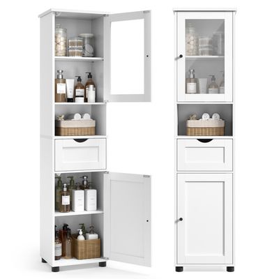 Festnight Meuble Colonne de Salle de Bain Meuble Haut de Rangement Armoire sur Pied de Salle de Bain, Armoire Salle de Bain Haute sur Pied, Meuble de Rangement Colonne, Placard Blanc 32x25,5x190 Armoire Salle De Bain Haute Armoire De Salle De Bain Haute Avec Éclairage, Avec Étagères Réglables Meuble Salle De Bain Blanc Étagères Réglables – Adaptées à vos besoins, les étagères ajustables de ce meuble de rangement salle de bain permettent de ranger aussi bien de petits accessoires que des articles plus volumineux. Ce meuble haut et étroit est conçu pour optimiser l’espace dans les petites salles de bain, mais aussi dans la cuisine, le salon ou l’entrée. Design Gain de Place – Colonne salle de bain haute et étroite, idéale pour optimiser les petits espaces tout en apportant un rangement supplémentaire pratique et élégant. Matériau sélectionné: ]Fabriqué à partir de MDF de haute qualité avec surface peinte, ce meuble de rangement de salle de bain assure une utilisation durable, une forte stabilité Polyvalence d’Usage – Ce meuble salle de bain convient également au bureau, salon, cuisine ou entrée, pour organiser serviettes, papier toilette, produits d’hygiène ou objets quotidiens. RANGEMENT SUPPLÉMENTAIRE : Avec 4 niches ouvertes, 1 tiroir et 2 placards avec 2 compartiments chacune, cette armoire de salle de bain est suffisamment spacieuse pour ranger les articles de toilette, les serviettes et bien d'autres choses de manière organisée Structure Solide & Durable – Conçue en matériaux résistants et imperméables, cette armoire salle de bain est stable, facile à nettoyer et durable pour un usage quotidien. Grâce à son design gain de place, il vous permet de ranger serviettes, papier toilette, produits d’hygiène et accessoires du quotidien en toute discrétion., 1., Polyvalence : Ce meuble salle de bain colonne peut aussi servir d’armoire de rangement pour la chambre ou le bureau., 2., Rangement flexible : Ses étagères réglables vous offrent un espace modulable adapté à tous vos besoins., 3., Matériaux résistants : Fabriqué en panneaux imperméables et facile d’entretien, ce meuble de salle de bain garantit solidité et durabilité., 4., Style élégant : Son design blanc raffiné s’accorde parfaitement à tous les styles de décoration intérieure.
