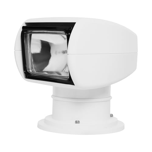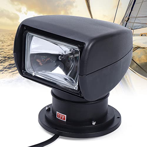 Lampe Recherche 800m 12V BZYFJB Phare Marin 100 W 12 V CC Avec Télécommande – Lumière Projecteur Maritime Télécommande 355 Procédure de contrôle : télécommande (incluse) Tension : 12 V CC., Courant : 6 A., Puissance : 100 W. Excellente source de lumière : l'ampoule halogène a un bon rendu des couleurs, une forte pénétration et un flux lumineux élevé, et sa lumière est presque aussi blanche que la lumière du soleil, ce qui permet une vision claire la nuit. Hauteur totale du produit : 25 cm Diamètre de la base : 18 cm. Safety Guard : il est étanche IP66 et peut également être utilisé dans des environnements difficiles tels que les tempêtes, ce qui est une garantie solide pour une navigation sûre. Entretien facile : une construction simple et une surface lisse rendent ce produit facile à nettoyer, vous n'avez besoin que d'une serviette pour enlever facilement la poussière et les taches. Compact et léger : il est petit (taille de la tête de la lampe : 30,5 x 20,6 x 15,6 cm) et léger (poids brut : 5,58 lbs), ce qui le rend facile à transporter, que vous soyez en mer ou à d'autres fins. Vous pouvez ensuite appuyer sur les boutons haut/bas/gauche/droite pour régler la direction de la lumière, ce qui apporte plus de confort. Laissez ce projecteur de recherche vous accompagner pour parcourir le monde, explorer l'inconnu et écrire votre propre légende de la lumière et de l'ombre. Test : projecteur LED extérieur 100W 10000 lumens étanche IP66 de toobettp Utilisation : Il est adapté pour les yachts de nuit, les patrouilles marines, la police de l'eau, les bateaux de pêche et d'autres opérations d'eau. Protection contre les accidents : L'appareil est étanche selon la norme IP66 et peut être utilisé dans des environnements difficiles tels que les tempêtes, offrant ainsi une garantie solide pour une navigation en toute sécurité Dimensions du colis : 31,4 x 26 x 21,3 cm., Poids brut : 2,53 kg. Rendement : E Modèle : HT6012., Type de source lumineuse : 1 ampoule halogène (incluse dans la livraison). Pratique à utiliser : il suffit d'allumer le bouton de la télécommande et elle commence à briller uniformément. Longueur du câble d'alimentation : 4,5 m. Indice de protection : IP66., Rotation de la tête de lampe : 355° (gauche/droite), 72° (haut/bas). Contenu de la livraison : 1 phare télécommandé. Télécommande LED rvb lumières d'inondation en plei... – Grandado Distance d'éclairage : 800 m. Grande distance et éclairage multi-angle : avec une lampe halogène de 100 W, un flux lumineux de 2300 lm et une température de couleur de 4300 K, la distance d'éclairage est jusqu'à 2624,67 ft, et la tête peut pivoter à 355 ° vers la gauche et la droite et 72 ° vers le haut et vers le bas, ce qui permet une plus grande zone d'éclairage et un plus grand champ de vision la nuit.