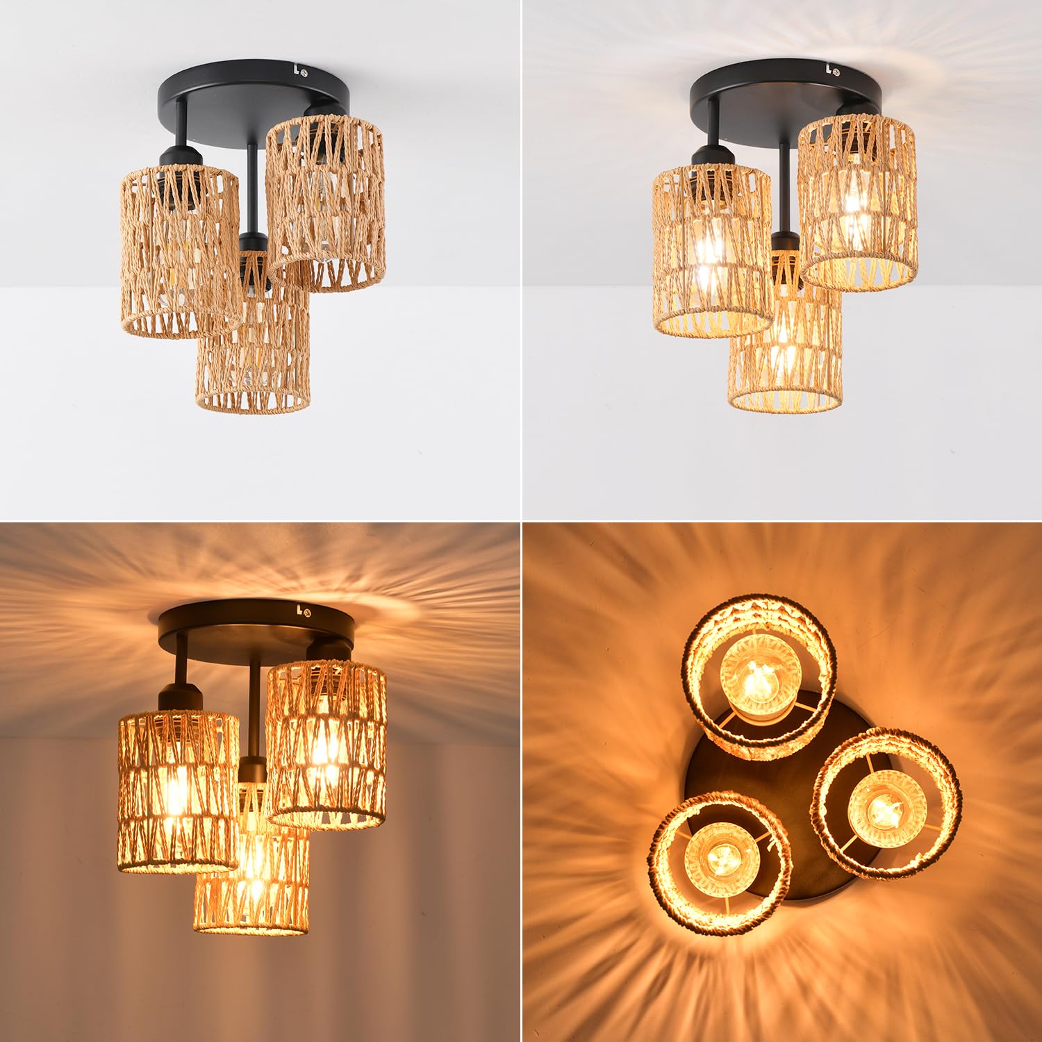Lustre en rotin, Décoration de plafond, Suspension en osier, Abat-jour suspendu, Plafonnier en bois, Abat-jours suspendus, Suspension lumineuse Ornemental et pratique à la fois, que vous installiez ce plafonnier en rotin dans votre salon, chambre à coucher, salle à manger, cuisine ou couloir, vous sentirez la forte rustique, le style bohème et la lumière chaude qu'il apporte à votre maison., ., 【Arbre de lampe en rotin naturel】Cette lampe de plafond suspendue est livrée avec des abat-jour en rotin tressé à la main : Naturel et écologique, Bonne transmission de la lumière et Lumière douce. Plafonnier Suspendu En Rotin, Plafonnier Boho à 3 Flammes Avec Abat Jour En Rotin Plafonnier Vintage En Bambou Lampe Rustique A Suspendre Lampe Noire En Osier Pour Le Salon Chambre Cuisine Couloir 92253221 Ce plafonnier offre une combinaison de trois abat-jour en rotin naturel et une base en métal noir. Que vous installiez ce plafonnier rustique dans n'importe quelle pièce de la maison, vous serez plongé dans la chaleur de la lumière et profiter de la merveilleuse atmosphère ! Lampe suspendue Diamètre du châssis de 200 mm, hauteur totale 315 mm, abat-jour d’un diamètre de 118 * 150 MM La tête de lampe se replie et pivote à plusieurs angles pour une lumière douce, confortable et uniforme. Son... ... 3 x support de lumière avec câble de 95 cm... Plafonnier en rotin suspendu sur Gens de Confiance 【Un plafonnier unique】Ce plafonnier offre une combinaison de trois abat-jour en rotin naturel et une base en métal noir. Lorsque le plafonnier salon est allumé, le plafond est joliment représenté par des ombres et des lumières. Le métal de haute qualité est solide et durable, il ne se décolorera pas et ne rouillera pas.