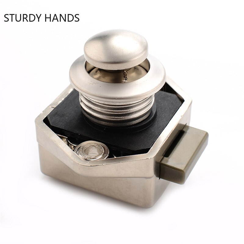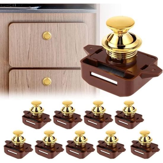 2 Pièces Serrure D'Armoire Serrure De Tiroir À Cylindre À Came Serrure de Bouton-Poussoir, 2 Ensemble d'Alliage de Zinc Sans Clé Serrure de Bouton-Poussoir d'Armoire avec Poignée, Serrure de Placard Sans Clé de Porte d'Armoire de RV pour, Camping-Car, Bateau, Yacht Emballage complet pour une installation facile: le package comprend des vis et des bouchons de verrouillage de rechange, ce qui rend le processus d'installation simple et pratique pour les utilisateurs de les niveaux de compétence. Fermeture sécurisée pour les meubles: le verrou à bouton-poussoir de l'armoire RV maintient efficacement les portes de votre armoire ou de votre armoire bien fermées, les empêchant de se balancer pendant les voyages sur les yachts, les navires ou les VR. 20 mm / 0,79 pouces Distance centrale du trou à vis: env. Caractéristiques : 1. Cette serrure est un nouveau type avec bouton de poignée, ajustée pour ship, yacht, camping-car, serrure de porte de meubles 14 - 18 mm / 0,55 - 0,71 pouce Liste d'emballage: 5 x RV Button Latch 20 vis x 5 x supports Loquet À Bouton Poussoir Pour Meuble Rv Armoire Tiroir P08-128-Pn[u9116... Double fonctionnalité: cette prise de bouton-poussoir combine à la fois le verrouillage et la gestion des fonctionnalités, offrant une expérience utilisateur transparente pour sécuriser et accéder à vos armoires et armoires sans effort. Spécification: Type d'élément: Bouton à bouton Latch MATÉRIAU: ALLIAGE ZINC + ABS Diamètre du trou d'installation: Env.