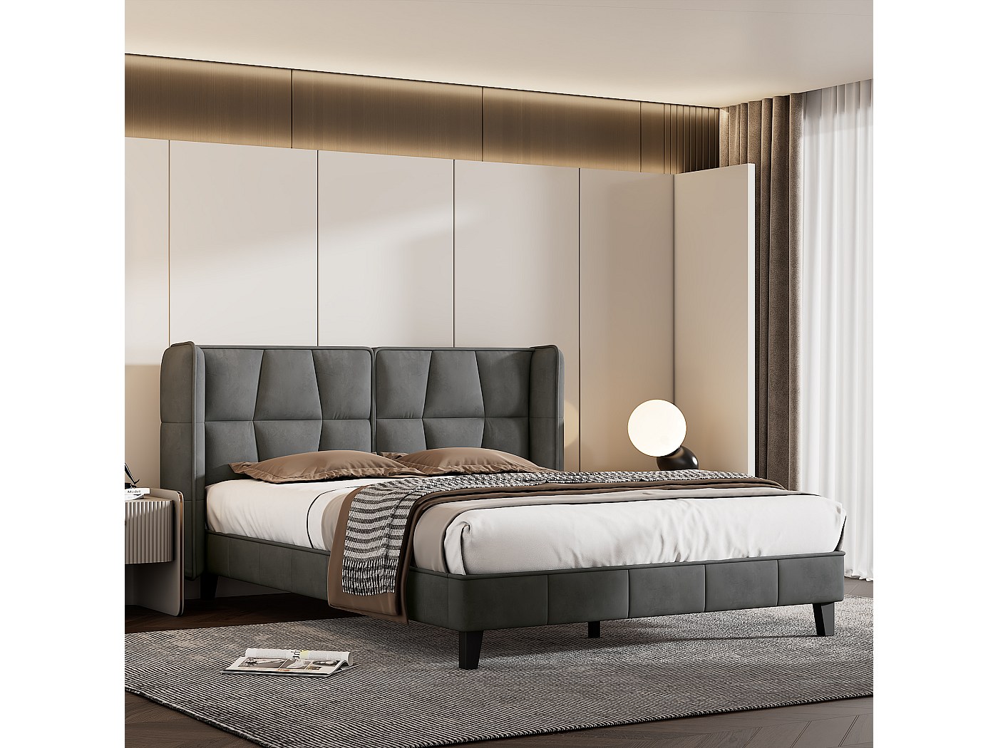Ce matelas à mousse à froid de haute qualité vous emmènera au septième ciel. Le sommeil reposant est primordial quelque soit l'âge, qui est assuré par ce matelas Description :- fabriqué dans l'UE- certifié du label Confiance textile Oeko-Tex Standard 100 - avec housse matelassée de 1,5 cm- anti-allergène- respirant- résistant à l'usure- découpé d'une grande pièce de mousse à froidHousse :Ne la mettez pas à la machine à laverNe faites pas la blanchir à la javelNe la repassez pasNe la nettoyez pas avec des produits chimiques Contenu de la livraison :1 x lit double1 x sommier à lattes1 x matelasL'oreiller, la couverture et les objets déco ne font pas partie de l'offre. Lit Double Rembourré Similicuir Lit Double Rembourré 180x200 Cm Gris Foncé - Ciel & Terre Commerce Sommier Lattes Inclus Matière : PU similicuir matCouleur : gris foncéDimensons extérieures (lo x la) : ca. Matière : PU similicuir mat Couleur : gris foncé Dimensons extérieures (lo x la) : ca. 210 cm x 189 cm Surface de couchage (lo x la) : 200 cm x 180 cm Hauteur de tête de lit : 78 cm Sommier à lattes de lit avec matelas Gris foncé 180x200cm Tissu - Lit Double - Lit Tapissier - Matelas À Ressorts Ensachés - Literie - Chambre À Coucher Conforama Cama box spring con colchón tela gris claro 180x200 cm Diseño de boton Le sommeil reposant est primordial quelque soit l'âge, qui est assuré par ce matelas. Produit de la marque Corium. 210 cm x 189 cmSurface de couchage (lo x la) : 200 cm x 180 cmHauteur de tête de lit : 78 cm Matelas à mousse à froid - 180 x 200 x 16 cmCe matelas à mousse à froid de haute qualité vous emmènera au septième ciel.