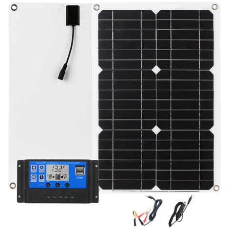Panneaux Solaires 12v 20w Kit De Panneau Solaire Portable Chargeur De Batterie Chargeur De Fil Solaire Étanche 12V Mainteneur De Batterie De Voiture Robuste Avec 4 Ventouses Pour Bateau Automobile RV Cable Panneau Solaire Construction résistante aux intempéries : conçu pour résister aux conditions extérieures difficiles, ce panneau solaire étanche permet une utilisation sûre dans divers environnements sans risque de dommages. Protection de l'environnement : le panneau solaire présente une efficacité de conversion élevée, ce qui le rend plus respectueux de l'environnement par rapport aux méthodes de charge traditionnelles alimentées par batterie Kit Panneau Solaire Portable | Boutique Générateur *Interface de sortie : USB + CC., *Puissance : 20 W. Accessoires inclus : le colis est livré avec deux clips et un câble de charge adapté à divers appareils tels que les lumières, les feux de circulation, les ventilateurs électriques, et plus encore. Chargeur de Batterie Intelligent 10A 12V-24V Chargeur Batterie pour Voiture Moto Mainteneur Chargeur de secours efficace : ce panneau solaire portable de 20 W sert de chargeur de secours efficace pour divers véhicules, y compris les voitures, camions, caravanes, bateaux et motos, garantit que votre batterie reste chargée pendant toutes les escapades en plein air. Caractéristiques : * Solution de charge polyvalente : ce panneau solaire portable de 20 W sert de chargeur de secours efficace pour divers véhicules, y compris les voitures, camions, caravanes, bateaux et motos, assurez-vous que votre batterie reste chargée pendant vos aventures. * Prévention de la charge inverse : la diode intégrée dans le clip empêche la charge inverse, protégeant votre batterie contre les dommages potentiels et prolongeant sa durée de vie. * Matériau : silicone monocristallin + ABS., * Dimensions : 210 x 175 mm., Couleur : noir. * Installation facile : conçu pour plus de commodité, ce panneau solaire peut être facilement monté sur votre véhicule, offrant un moyen facile de garder votre batterie chargée tout au long de la journée. *Tension en circuit ouvert : 21 V. *Tension de fonctionnement : 5 V. * Design résistant aux intempéries : conçu pour résister aux conditions extérieures, ce panneau solaire est imperméable et durable, ce qui lui permet d'être utilisé en toute sécurité dans divers environnements sans risque de dommages.