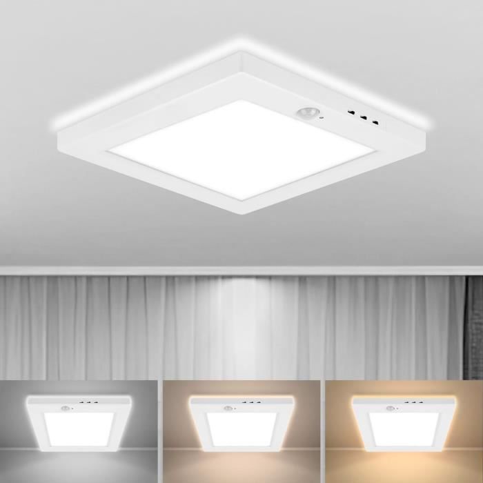 En outre, la lampe dispose d'une fonction de minuterie qui vous permet de régler les temps de fonctionnement de 15, 30 ou 60 minutes pour plus de commodité et de contrôle de votre expérience d'éclairage. Lumière LED avec détecteur de mouvement, rechargeable USB-C, magnétique, pour armoires, escaliers et cuisines, pack de 3, 10 cm, lumière blanche. Plafonnier LED sans fil avec détecteur de mouvement, rechargeable, lumière de douche, 3 températures de couleur et télécommande 1 Fonction du capteur 2 Méthode installation 3 Rechargeable 4 Fonction minuteur Design ultra fin : ce plafonnier sans fil a une épaisseur de seulement 0,5 pouces et est donc un remplacement parfait pour les plafonniers encastrés traditionnels. ② Télécommande : utiliser pour allumer/éteindre, sélectionner les couleurs, régler la luminosité, basculer entre les modes et régler la minuterie. Télécommande et bouton poussoir pratiques : pour plus de commodité, notre lampe d'armoire à détecteur de mouvement est équipée à la fois d'un interrupteur intégré et d'une télécommande : ① Bouton poussoir : appuyez manuellement sur l'interrupteur d'alimentation pour allumer/éteindre, changer la couleur de la lumière, régler la luminosité et basculer entre les modes. Notre plafonnier rechargeable dispose d'une puissante batterie intégrée qui offre 15 à 40 heures d'éclairage lorsqu'il est complètement chargé, en fonction de la luminosité et du mode de fonctionnement choisis. Plafonniers à détecteur de mouvement PIR, lampes murales intelligentes Avec une fonction de gradation en continu de 10 % à 100 %, elle couvre parfaitement tous vos besoins d'éclairage tout au long de la journée. Grande capacité de la batterie et fonction de charge de type C : plus besoin de batterie séparée. 【3 couleurs de lumière & intensité variable en continu & minuterie】Ce plafonnier LED dispose de trois températures de couleur réglables : blanc chaud, blanc naturel et blanc froid. La luminosité allant jusqu'à 250 lumens assure suffisamment de luminosité dans votre maison. Plafonnier Led Detecteur De Mouvement Lampe Rechargeable à... Plafonnier à batterie avec détecteur de mouvement LED rechargeable - Lampe d 'intérieur sans prise électrique - Lumière sans fil avec télécommande - 3 températures de couleur - Pour salle de bain, cave Mise à niveau pour plus de commodité dans votre éclairage domestique