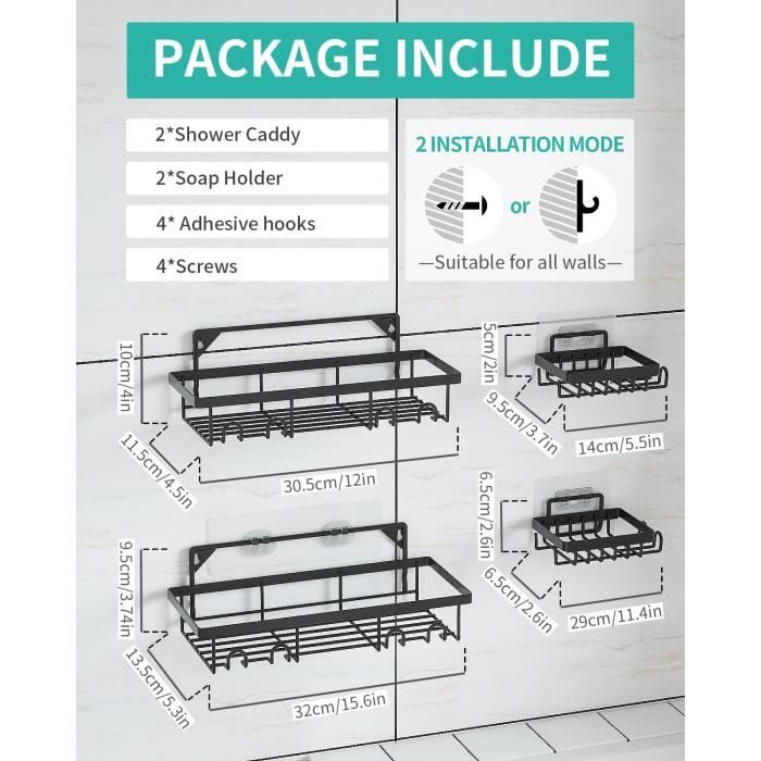 Porte Savon Pour Etagere Douche Porte-Savon Mural Adhésif Inox - 4 Crochets Sans Perçage Pour Salle De Bain & Cuisine | Support Éponge & Gel Douche Porte Savon Mural Charge 5kg Par Crochet Lot De 4 Crochets Pour Tringle Télescopique, Crochets Muraux Auto Adhesifs Clips De Fixation Pour Rideau De Douche Pince Pour Tringle Telescopique 86250116 Crochets Adhésifs Douche Veuillez ne pas l'utiliser sur des murs peints car cela pourrait endommager la peinture et se décoller. Étagère de douche avec coussinets adhésifs Facile à installer : décollez simplement le film derrière l'autocollant, collez les crochets de l'autocollant sur le mur, attendez 24 heures avant de placer vos articles. Patère de salle de bains Lot de 4 crochet adhésifs de rechange solides pour étagère de douche et crochets muraux imperméables pour salle de bain, porte-savon Contenu de l'emballage : il y a 4 autocollants transparents pour chariot de douche dans l'emballage, taille 70 x 70 mm/ 2,75 x 2,75. Large application : l'autocollant de douche est adapté à tous les types de panier de douche sans perçage, étagère de rangement de cuisine et de salon... Rappel chaleureux : l'autocollant pour chariot de douche convient aux murs durs plats et lisses tels que le carrelage, le marbre, le verre, le bois, le métal, l'acrylique, le plastique. Caractéristiques : L'autocollant du panier de douche n'a pas besoin d'être percé, n'endommage pas le mur et ne laisse aucune trace après le retrait (il est préférable de le retirer après l'avoir chauffé avec un sèche-cheveux).