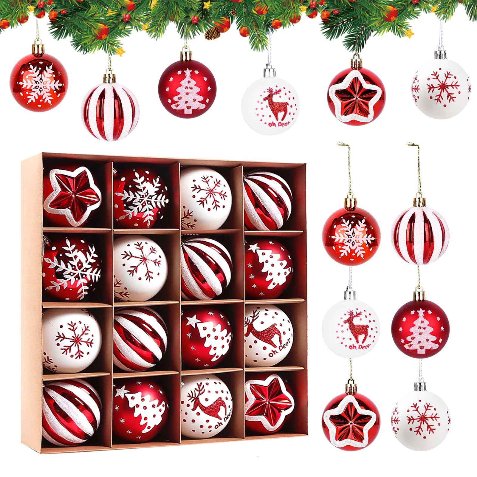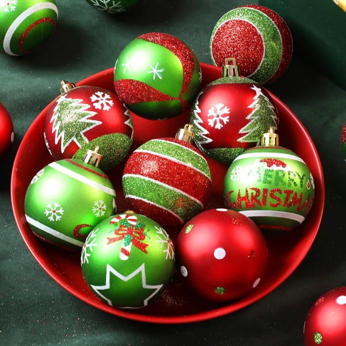 Lot Boule De Noel Lanpn 30 Pcs Boule De Noel Exterieur, 6 Cm Mini Boules De Sapin Noël Boules De Noël Extérieur Parfait pour tout espace festif à l'intérieur et à l'extérieur. Lot de 6 boules de Noël (D80 mm) en verre Forêt colorée Vert sapin... Design classique et étincelant : ces boules de Noël de 6,1 cm présentent des couleurs classiques rouges et vertes avec des finitions pailletées éblouissantes, parfaites pour les arbres de Noël, les fêtes et les mariages Ces ornements créent une ambiance festive dans n'importe quel espace et impressionnent tous les invités Décoration étincelante pour les célébrations de Noël et d'Halloween Boules De Noël Rouges Et Vertes Sur Fond Rouge | Vecteur Premium 【Cadeau Et Décoration Idéal】Ces ornements de Noël classiques constituent des cadeaux sincères pour les amis et les parents. Description du produit Lanpn Ensembles De Boules De Noël Rouges & Vertes Boules Pailletées Pour Toutes Occasions Parfaites pour orner couronnes, fenêtres, balcons, restaurants ou boutiques – un atout polyvalent pour Noël ou les fêtes à thème amusantes. Ces boules de Noël font de jolis cadeaux pour les enfants, les familles et les passionnés de décoration. 【Décoration d'arbre De Noël】Ce lot de 30 boules de Noël comprend des boules de taille standard de 6 cm aux motifs variés, ornées de motifs de Noël classiques tels que des arbres, des flocons de neige, des pois, des vœux Joyeux Noël et des sucres d'orge, le tout rehaussé d'accents de paillettes rouges et vertes classiques La conception robuste et douce peut protéger les branches sans craindre qu'elles ne se plient, c'est la décoration de Noël idéale Décoration Amusante Pour Une Maison Festive