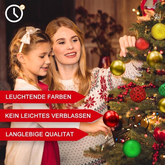 Une boîte pour ranger vos décorations de Noël colorées ! Ce coffret contient des couleurs harmonieusement coordonnées, pour un résultat impeccable. Notre lot de 101 pièces contient des boules de Noël magnifiquement conçues de différentes tailles ainsi qu'une élégante étoile en pointe de sapin. Dimensions des petites sphères (H x D) : env., 4 x 3 cm, 1 g Store - Lot de 48 boules de Noël pour sapin de Noël, boules de 7 cm Dimensions des grandes sphères (H x D) : env., 7 x 6 cm, 7 g Avec décorations complètes pour l'arbre : y compris une étoile pointue. Les boules sont faciles à suspendre grâce aux rubans argentés. 【Facile à utiliser et à suspendre】Chaque boule est légère et munie d'un cordon de suspension pratique, idéale pour une décoration rapide. Boules de Noël, lot de 101 Avec ce grand ensemble de boules de Noël, vous pourrez décorer votre sapin avec élégance. Contenu de la livraison 101 boules de Noël dans une boîte de rangement Disponible en plusieurs couleurs Ainsi, vous pouvez laisser libre cours à votre créativité et personnaliser votre maison. Plusieurs teintes à associer selon vos envies – dites adieu à la monotonie. Boîte Rangement Boules De Noël Lot De 101 Boules De Noël Rouges Incassables Pour Sapin Ornements Noël Réutilisables Votre guide ultime des coloriages de Noël ! Comprend une boîte de rangement pratique avec poignée. Vous décorez ainsi complètement votre arbre à la fois élégant, harmonieux et festif. Possibilités de décoration polyvalentes : pas seulement pour le sapin de Noël. Décorations de sapin de Noël avec rubans pour une suspension facile Décorations de sapin de Noël Couleurs élégantes et festives : l'ensemble offre un mélange harmonieux de couleurs de Noël classiques et de différentes surfaces : brillantes, mates et scintillantes. Kit complet de décoration de sapin de Noël - 101 pièces : transformez votre maison en un véritable pays des merveilles hivernales. Un sapin ainsi décoré apportera de la joie aux enfants et créera une ambiance paisible pour les adultes durant les fêtes de fin d'année. Présentation du produit BOULE DE NOËLZENATERRA-101 boules de Noël brillantes incassables, boîte rangement, idéal calendrier de l'Avent. Kit complet de décoration de sapin de Noël 101 pièces transformez votre maison en un véritable pays des merveilles hivernales Dimensions des sphères moyennes (H x D) : env., 5 x 4 cm, 3 g Lot de 101 boules de Noël : comprend 100 boules de Noël assorties en rouge et or classiques avec trois tailles différentes (3 cm/4 cm/6 cm) pour créer un...