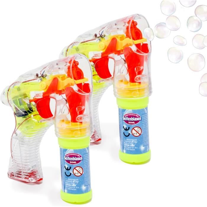 Blaster à bulles clignotant rouge et bleu, jouet à piles de 15,5 cm, chaque lot comprend une solution à bulles de 59 ml, un jouet amusant, une lumière de couleur rotative, des Pistolet Bulles Solution Incluse 2 Pistolets à Bulles Avec 2 Bouteilles De Solution De Recharge à Bulles Machine A Bulles Pour Enfant Grand plaisir pour petits et grands : les enfants et les adultes sont fascinés par les bulles flottantes et brillantes Que ce soit pour une fête, un anniversaire, un mariage ou une fête costumée, avec le pistolet à bulles, petits et grands. Avertissement De Sûreté ne convient pas aux enfants de moins de 3 ans, risque d'étouffement en raison de petites pièces pouvant être avalées, ne pas boire de liquide Pistolet à bulles automatique avec DEL intégrées Pistolet à bulles pour enfants à partir de 6 ans, en plastique rouge, environ 13,5 x 15,5 x 5,5 cm 113A Panamalar 3pcs Pistolets à Bulles,Machine à Bulles Savon Enfants 4000 Bulles Contient 3 Flacons de Solution et 10 Sachets de Recharge Enfant/Anniversaire/fête Faits saillants principaux Pistolet à Bulles Automatique Amélioré : Démarrage par simple pression, ce pistolet à bulles pour enfants peut produire plus de 6 000 bulles par... Prêt à l'emploi : il suffit d'ouvrir la solution à bulles et de visser au bas du pistolet Le kit à bulles comprend un pistolet et une solution à bulles de 53 ml.
