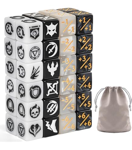 Zerodis 24 Pièces Marbre Compteurs Dés Jeu de Cartes Compatible Stats Dés Jdr 48 Pièces Compteurs De Dés MTG D6 à Double Valeur En 8 Couleurs Avec Dés D6 16mm 8 Couleurs Un accessoire fiable pour les passionnés de Magic the Gathering, jeux de stratégie ou jeux de rôle. Idéal pour suivre les points de vie, les marqueurs de loyauté ou les effets +1/+1 et -1/-1 dans vos jeux de cartes stratégiques comme Magic the Gathering, CCG ou Final Fantasy. Cette variété vous permet de distinguer facilement les effets ou unités pendant vos parties de deck commander, jdr ou cartes Magic. 48 dés compteurs MTG – compatibles Magic The Gathering Ce set contient 48 compteurs de dés MTG, dont 24 positifs et 24 négatifs. Idéal pour suivre les points de vie, les marqueurs de loyauté ou les effets 1/ 1 et -1/-1 dans vos jeux de cartes stratégiques comme Magic the Gathering, CCG ou Final Fantasy Taille standard D6 – chiffres lisibles et manipulation fluide Chaque dé à compteurs mesure 16 x 16 x 16 mm, la taille D6 classique, offrant une prise en main confortable. Parcourez notre sélection de dés dé compteur d6 : vous y trouverez les meilleures pièces uniques ou personnalisées de nos boutiques Les chiffres gravés sont grands et bien visibles sur chaque face, réduisant les erreurs lors du suivi des effets ou des points. 8 couleurs attrayantes – différenciation claire en jeu Les dés sont répartis en 8 couleurs vives, dont marbre, dégradé bicolore, effets pailletés et noir & blanc classiques.