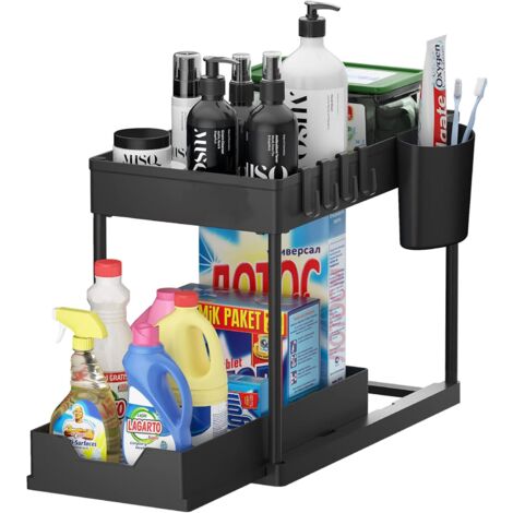 Rangement Sous évier à 2 Niveaux,Organiseur de Cuisine, Étagère sous Évier, Porte-épices,Panier de Rangement Coulissant en métal,pour Cuisine, Salle de Bain,Chambre (noir-1PC 【Grande Capacité】Taille: 39CM x 21CM x 37., 5CM,L'organisateur de salle de bain adopte un design double couche qui maximise l'utilisation de l'espace vertical. Rangements Sous évier NPPLUS Organiseur Sous évier à 2 Niveaux : Organiseurs D'armoire En Fer Avec Tiroir Coulissant U2013 Rangement Coulissant Pour Salle De Bain, Cuisine, Bureau (noir Rangement Sous évier Rangement sous Évier Cuisine Il peut également être utilisé comme 2 plateaux, idéal pour les tasses, assiettes, bols, fruits, etc. Facile à installer sans aucun outil. Étagère de Rangement sous Évier - L499 - 2 Niveaux - Gris - Support de... Organiseur sous évier à 2 niveaux avec tiroirs coulissants en Permet un accès facile aux articles lorsque vous accédez aux armoires sous l'évier. Parfait pour l'organisation de la cuisine, du salon, de la salle de bain, du bureau, du balcon, du rangement de maquillage, du panier de rangement de bureau et du panier à outils de garage, peut également être utilisé comme petit support de plantes. 【Panier coulissant Design】 L'organisateur sous évier est différent des autres.