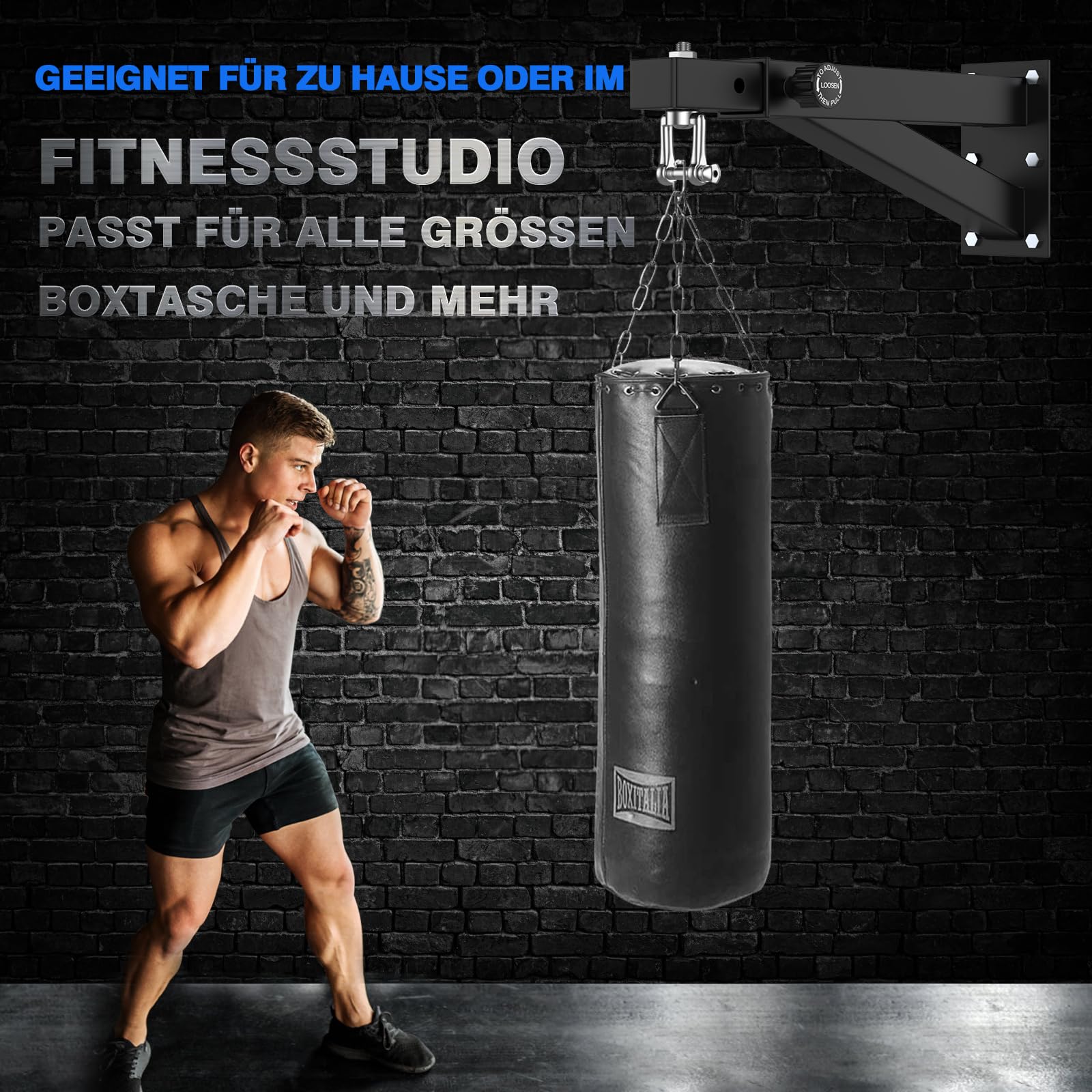 Sac de frappe mural pour une installation facile : vous recevrez 1 support de sac de frappe robuste avec 12 boulons. Compatibilité universelle du sac – Prend en charge tous les sacs lourds (boxe/MMA/Muay Thai) jusqu'à 362,9 kg avec points de suspension renforcés. 👍【Forte capacité de charge】Le design unique de la structure triangulaire assure une grande stabilité et une grande capacité de charge tout en présentant un impact esthétique et visuel moderne, ce qui en fait un choix idéal pour le fitness à domicile Conseil : si vous voulez obtenir une rotation silencieuse à 360° du crochet, lors du montage du crochet, vous n'avez pas besoin de visser la vis hexagonale très serrée pour obtenir cet effet. Le cadre en acier robuste garantit des années de service fiable tout en répondant à tous les besoins d'entraînement de sports de combat. Support Mural Boxe Support Mural Sac De Frappe 100kg - Acier Renforcé - Pour Boxe, MMA, Arts Martiaux Support Boxe Acier Robuste 👉【Parfait pour tout support de sac de frappe lourd】Que vous souhaitiez pratiquer la boxe, le MMA, le Muay Thai ou tout autre sport de contact, ce support mural pour sac de frappe peut supporter n'importe quel sac lourd jusqu'à 362,9 kg. Vous pouvez accrocher votre sac de frappe préféré, sac de sable ou sac de frappe et profiter de votre entraînement à la maison ou à la salle de sport. Support sac de frappe : Test, avis et comparatif 2019 | Lequel choisir Sac De Frappe Adulte Sur Pied IMAYCC Support Sac De Frappe-Potence Sac De Frappe Ru00e9glable, Bidirectionnalitu00e9 Support De Sac De Boxe Tru00e8s Ru00e9sistant Pour Potence Sac De Frappe La Maison Ou Le et sont conçus avec des bretelles diagonales épaisses et plus larges qui peuvent supporter jusqu'à 400 kg. Construction de qualité industrielle – Cadre en acier haute densité avec revêtement résistant aux intempéries pour une durabilité intérieure/extérieure. Scènes adaptées et design universel : notre support mural pour sac de frappe est parfait pour les gymnases à domicile ou les gymnases commerciaux et s'adapte à toutes les tailles de sacs de boxe, de kickboxing, de Muay Thai, de sacs et plus encore Design absorbant les chocs résistant aux coups de pied puissants et aux frappes répétées sans desserrer. Conseil : il est recommandé d'utiliser un foret de 10 mm pour le perçage., (non inclus) Principales caractéristiques : design réglable et rotatif – Réglage de la longueur sur 5 positions (43,2 à 63,5 cm) avec rotation complète à 360° pour un positionnement parfait du sac. (Lors de l'assemblage du crochet, les rondelles dans l'emballage sont utilisées sur les boulons hexagonaux, ce qui signifie que vous n'avez plus à vous soucier que les écrous se détachent).