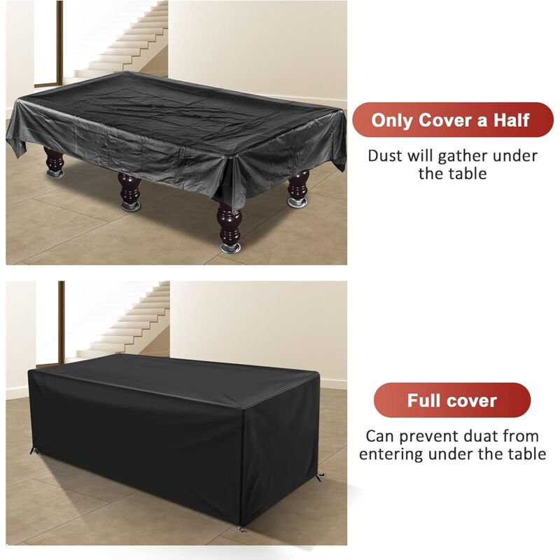 Idéal aussi bien pour une utilisation intérieure que extérieure. Tissu Oxford résistant aux intempéries : fabriqué à partir de tissu Oxford 210D haute densité, il est indéchirable et dispose d'un revêtement de base argenté pour une protection UV supplémentaire. Sa coupe chaude offre une protection contre le vent, une protection maximale. Les meilleures tables de billard du moment en février 2021 Facile à nettoyer : cette housse de table de billard est fabriquée dans un matériau durable et imperméable qui empêche la poussière, la saleté et les déversements d'endommager votre table. Cette housse couvre entièrement la table, empêchant ainsi les animaux domestiques, la poussière et la saleté d'endommager la surface. Son design ajusté assure une protection efficace, que ce soit à l'intérieur ou à l'extérieur. Cette housse convient aux tables de billard de 7, 8 et 9 pieds Housse élastique Lavable Durable Housse Table De Billard Housse De Protection Pour Table De Billard - 7ft/8ft/9ft - Anti-Poussière Oxford 210D Protection Table De Billard Housse Imperméable Le tissu Oxford 210D avec revêtement argenté est imperméable, anti-UV et résistant. La bande élastique en bas assure un ajustement serré même par vent fort