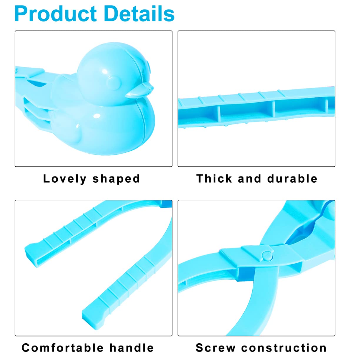 Les mesures étant prises à la main, les tailles indiquées peuvent varier légèrement. Caractéristiques : Les enfants auront un écrasement sur ce produit en raison de sa couleur vive et de ses adorables caractéristiques d'apparence. Forme unique et mignonne de canard, design petit et léger pour une prise en main aisée. Un outil formidable pour les combats de boules de neige en plein air en hiver Famille parfaite : faites une boule de neige rapide et obtenez une boule de neige ultime. Idéal pour Noël, un anniversaire ou pour remplir des sacs à friandises. ~ Un merveilleux outil pour les combats de boules de neige... Les enfants auront un écrasement sur ce produit en raison de sa couleur vive et de ses adorables caractéristiques d'apparence. Machine à boules de neige en forme de canard, clip pour fabriquer des boules de neige avec poignée pour adultes et enfants, outil de fabrication de Il est fabriqué en plastique. La longueur de ce produit est de 20,5 cm. Fabriquer Boule Neige Facile Hand Spinner,Pince à Boules De Neige En Forme De Canard Et Dinosaure Pour Enfant,Bonhomme De Outil Neige Sans Avoir Froid Aux Mains Remarques : En raison des différences dues à l'écran et à l'éclairage, la couleur de l'article peut être légèrement différente de celle de la photo. Caractéristiques : Il peut cultiver la coordination œil-main des enfants et les loisirs, ce qui montre sa multifonctionnelle. Le design polyvalent permet au produit de cultiver la coordination œil-main des enfants et les passe-temps.
