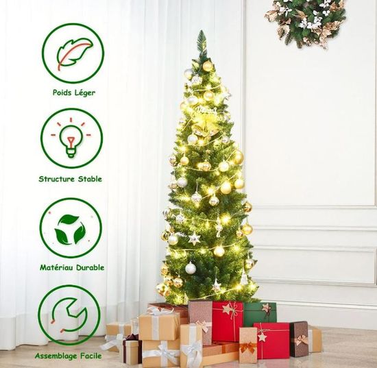 Commandez DREAMADE Sapin de Noël Artificiel 150CM/180CM/210CM/240CM, Pieds en Fer et Feuilles en PVC, 350/650/950/1138 Branches Décoration pour Maison Noël Blanc (180cm D’autre part, le revêtement de protection peut empêcher le sapin de Noël de tomber ou de se frotter contre le sol et de l’endommager. Sapin De Noel Blanc DREAMADE Sapin De Noël Artificiel 150CM/180CM/210CM/ 240CM, Pieds En Fer Et Feuilles En PVC, 350/650/950/1138 Branches Décoration Pour Maison Noël Blanc (210cm Sapin De Noel Artificiel Blanc 180 Cm Hauteurs multiples au choix - Ce sapin de Noël artificiel avec des flocons de neige est très beau et vous pouvez le choisir parmi quatre hauteurs : 150, 180, 210 et 240 cm. Montage facile - Notre sapin de Noël est facile à assembler, il vous suffit de relier chaque parties des troncs et puis les fixer sur les pieds en fer. Attetion: après l'installation, il faut porter des gants pour ouvrir les branches et les aiguilles du sapin, et vous verrez alors un bon sapin de Noël. Description Ce sapin DREAMADE va illuminer votre Noël ! Disponible en 4 tailles (90, 120, 150, 180cm), il convient à tous les intérieurs. Les flocons de neige et l'étoile au sommet sont équipés de LED qui créent une ambiance magique quand on les allume. Les branches en PVC vert ont un aspect naturel et réaliste. Le pied en fer robuste assure une stabilité parfaite, même chargé de... DREAMADE Sapin de Noël Artificiel avec Aiguille de Sapin Enneigé, Feuilles en PVC & Fruits Rouges, Arbre de Noël avec Pieds en Fer pour Maisons,Boutiques,Ecoles, 150cm/180CM/210CM/240CM (150 cm Un grand nombre de branches peut rendre le sapin de Noël plus florissant. Idéal pour Noël - Pour Noël, le sapin de Noël est l’un des éléments les plus indispensables : il peut décorer votre maison et créer une atmosphère plus festive. Vous pouvez choisir la hauteur de sapin de Noël en fonction de la taille de votre maison ou le nombre de personnes, des hauteurs différentes vous apporteront le même sentiment de Noël.