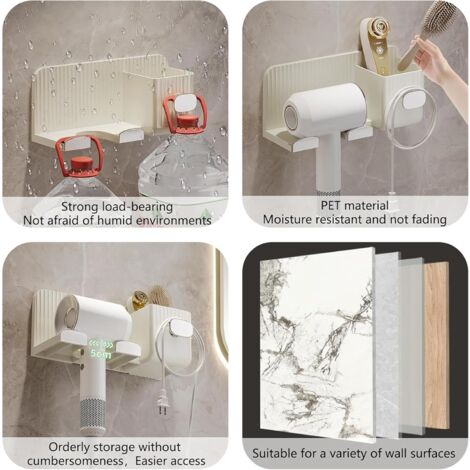 🌈【Support de fer à boucler tendance】Ce support de fer à lisser blanc est tendance et pratique. Il apporte une touche de style et de sophistication tout en offrant une fonctionnalité pratique. 🌈【Support de sèche-cheveux pratique】Ce support mural sans perçage se compose d'un support et d'une boîte de rangement. Conçu pour optimiser l'espace, il est idéal pour les petites salles de bain, les dortoirs, les appartements, etc. Détails de l'article: Nom: Support pour sèche-cheveux sans perçage Couleur: Blanc Matériau: Plastique Dimensions du support pour sèche-cheveux: 16*13*6,5cm/6,3*5,1*2,6douane Dimensions du support pour fer à friser: 12,5*5,5*4,8cm/4,9*2,1*1,9douane Poids du support pour sèche-cheveux: 126g Poids du support pour fer à friser: 78g Contenu de l'emballage: 1*support pour sèche-cheveux 1*support pour fer à friser Conseils: ❤ Le mur doit être propre et exempt de taches d'eau avant de coller. Mkitnvy Porte Sèche Cheveux, Support Seche Cheveux et Lisseur, Support Dites adieu aux tracas du quotidien. 🌈【Installation facile】Notre support de sèche-cheveux est facile à installer et ne nécessite aucun perçage ni outil spécial. Porte Sèche Cheveux, Support Mural Support pour Sèche-Cheveux et Fer à... Gain De Place Petit Espace Support Seche Cheveux, Porte Sèche Cheveux Avec Range-Câbles, Support Accroche Seche Cheveux Idéal pour ranger peignes, rasoirs, épingles à cheveux et autres accessoires. ♥ Mains libres: Séchez et coiffez vos cheveux tout en gardant les mains libres pour vous coiffer ou regarder votre série préférée. Tailles idéales]Ce support pour sèche-cheveux mesure 16*13*6,5cm/6,3*5,1*2,6douane, et le support pour fer à iser mesure 12,5*5,5*4,8cm/4,9*2,1*1,9douane ♥ Grande capacité de charge: Notre support a été soigneusement conçu pour garantir une forte capacité de charge et maintenir votre sèche-cheveux en toute sécurité. Sa conception ouverte simple vous permet de ranger et de ranger le fer à boucler immédiatement après utilisation, permettant ainsi une dissipation rapide de la chaleur. Support de sèche-cheveux autoportant moderne et élégant: Ce support de sèche-cheveux au design élégant et moderne s'intègre parfaitement à toute salle de bain ou dressing. Vous pouvez ainsi ranger votre sèche-cheveux dans un espace restreint et tout organiser !