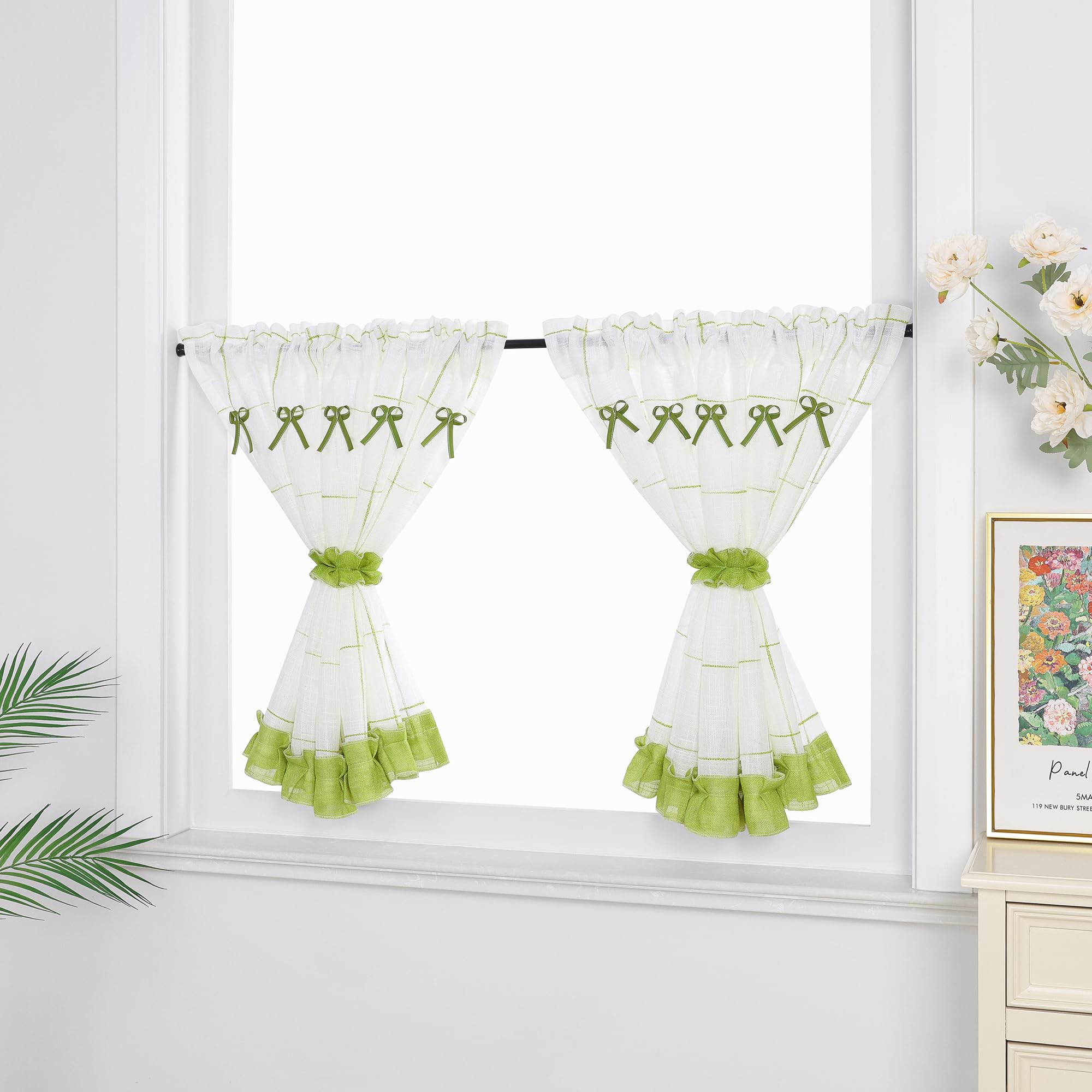Design : Le bas du rideau est orné d'une bande de dentelle, un rideau à la fois innovant et décoratif. Matériau du rideau : 100 % polyester, matériau semi-transparent, avec une légère brillance à la surface. Il a également une fonction décorative. Yujiao Mao 1 rideau brise-bise style maison de campagne avec aspect lin Utilisation polyvalente : Parfait pour divers espaces tels que la cuisine, le salon, la salle à manger, la chambre à coucher, et d'autres espaces intérieurs. Yujiao Mao Rideau brise-bise blanc campagnard - Rideau de cuisine - Rideau de bistrot transparent - Rideau café - Avec cordon de serrage - 140 x 160 cm Salon Décoration Yujiao Mao Lot De 2 Rideaux Style Campagne Motif à Carreaux Rideaux Brise-bise Occultant Et Salle De Bain Avec 2 Embrasses Rouge LxH 80x120cm Rideau Cuisine En voilage 100% polyester transparent, il laisse passer la lumière tout en préservant l'intimité dans la salle de bain, la cuisine ou sur le balcon. Le design...