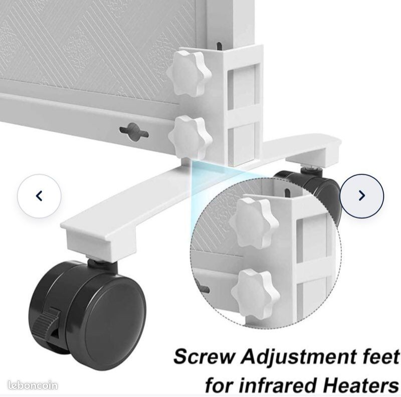 Support de chauffage : ces supports de chauffage électriques sont universels et adaptés pour le chauffage électrique de différentes marques et modèles de cadre Les rouleaux peuvent également être pincés afin que le chauffage ne puisse pas rouler. Support Radiateur Mobile Universel Lot De 2 Pieds Chauffants Infrarouges Universels - Pieds Roulettes Radiateur Lot de 2 pieds de chauffage infrarouge Contenu de la livraison : 2 pieds universels pour chauffage infrarouge, 4 roulettes, 2 vis, 1 clé. Matériau : pieds en aluminium, roulettes en plastique Femme, échauffement, pieds, chauffage, Porter, laine, chaussettes... Lot De 2 Pieds De Table De Bar Forme De T | Pied De Meuble Anthracite Acier Cfw56994 93855712 MOBILE: Pratique à changer si vous souhaitez utiliser votre chauffage infrarouge comme un support mobile. Roues avec revêtement en caoutchouc antidérapant pour plus de stabilité et éviter les rayures sur le sol UNIVERSEL : ces pieds de chauffage infrarouge sont universels et s'adaptent aux radiateurs infrarouges avec un cadre de différentes marques et modèles.