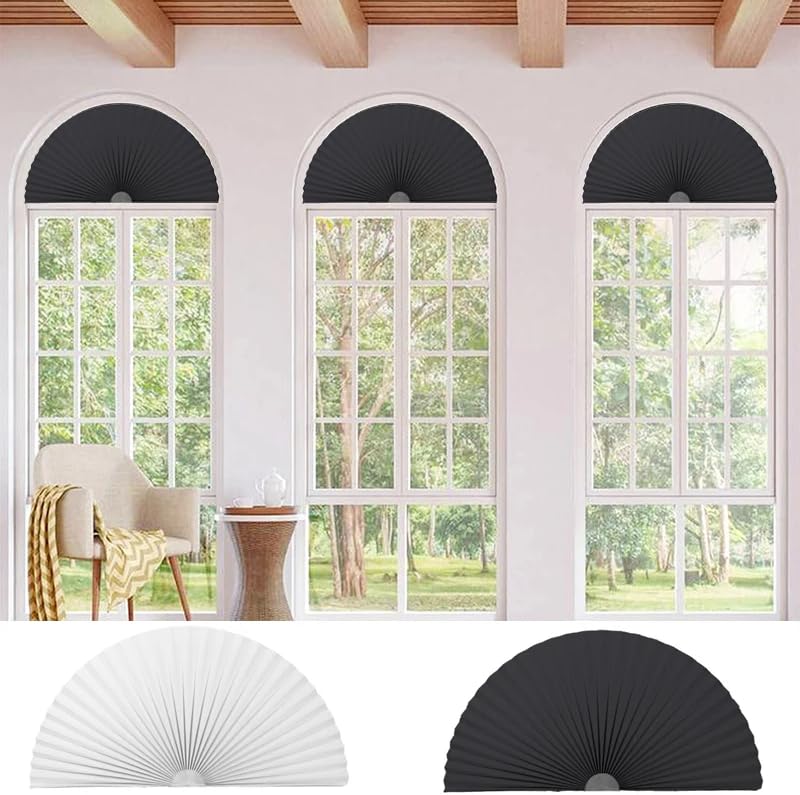 Lot De 2 Stores En Forme D'arche De Fenêtre En Demi-cercle Non Tissé à Coller Sur Mesure - Filtre La Lumière - Demi-lune - Stores Plissés Pour Porte D'entrée De Rayon De 90 Cm (noir