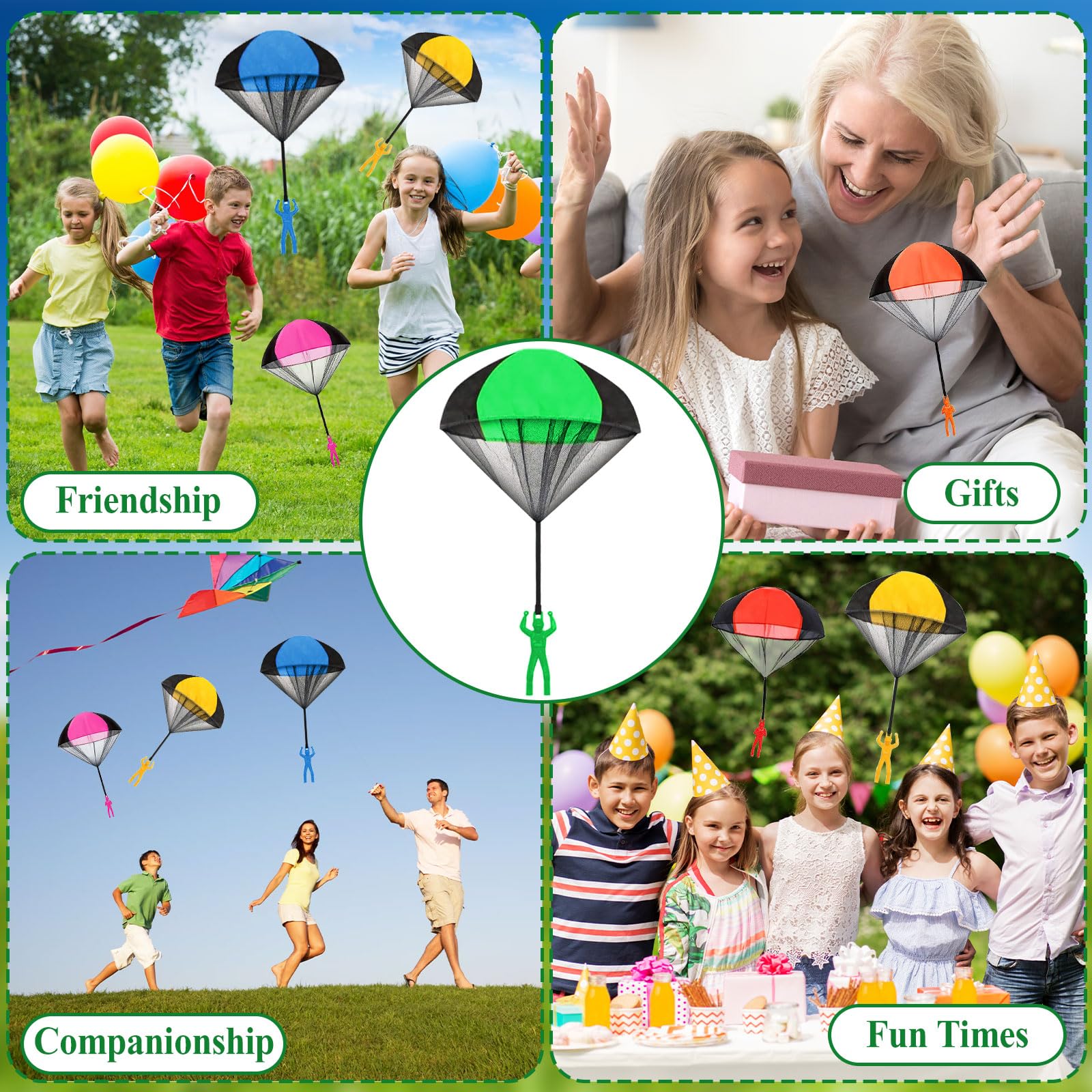 Matériau de qualité supérieure : nos parachutes sont fabriqués en nylon respectueux de l'environnement, tandis que les jouets parachute pour enfants sont fabriqués en plastique ABS de haute qualité, ce qui garantit durabilité et sécurité pour les enfants. Design réaliste : notre lot de 2 jouets parachutistes avec parachute est conçu pour atterrir lentement, tout comme un véritable parachute. Parfait pour les fêtes : ces jouets parachute colorés pour enfants sont parfaits comme accessoires de fête pour lancer des boîtes ou d'autres réunions en plein air. Box cadeau parachute : une activité ludique pour enfants et Convient pour toutes les occasions : des activités de plein air aux jeux de voyage, ces jouets parachutistes sont polyvalents et parfaits pour divertir les jouets à hélice pour enfants en déplacement. Design réaliste : notre lot de 2 jouets parachutistes avec parachute est conçu pour atterrir lentement, tout comme un véritable parachute. Ce design amusant et réaliste offre à votre enfant et à ses amis des heures de divertissement avec des flippers d'eau Parachutiste Jouet Enfant 3 Ans 8 Poignées Jouet De Parachute Multicolore 2m Jouent Arc-en-ciel Parachute Jouet Lance Main Enfants Nylon Couleur Jeux d'extérieur,Mini Parachute à Lancer à la Main pour Enfant,Jouet de...
