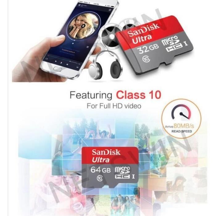 Vitesse de lecture - jusqu'à 30 Mo/s, vitesse d'écriture inférieure Une grande quantité d'espace pour vos photos et vidéos Transférez vos fichiers rapidement et facilement Classe 10 UHS-I Sandisk SDSQUNC-064G-GN6TA - Carte Mémoire MicroSDXC Ultra 64 Go 80 MB/s Avec Adaptateur Carte Sd Sandisk Avec les cartes SanDisk Ultra SD UHS-I, vous bénéficiez de téléchargements plus rapides, d'une grande capacité et de meilleures performances pour capturer et stocker jusqu'à 256 Go* des images de haute qualité et des vidéos Full HD (2 Idéale pour les appareils photo compacts à milieu de gamme, cette carte microSD polyvalente comprend un adaptateur de carte SD™ compatible avec les appareils compatibles SD tels que les appareils photo, les caméscopes et les ordinateurs portables Sandisk Ultra MicroSDXC 512Gb, Carte Mémoire C10 UHS-I Full HD Video