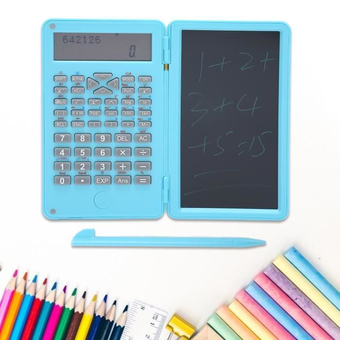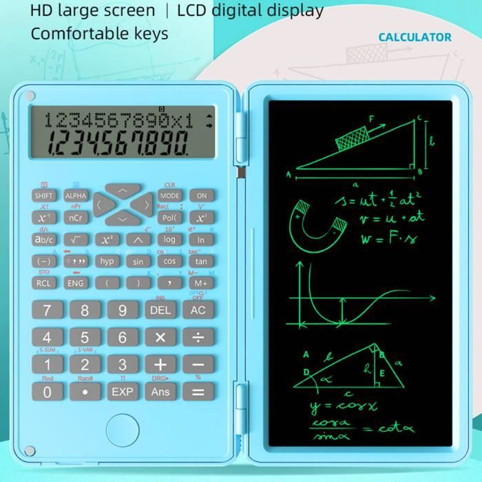 Tablette d'écriture : cette calculatrice de bureau est conçue avec une tablette d'écriture de 6 pouces, vous permettant de prendre des notes tout en calculant, en appelant et en vous réunissant. Calculatrice Scientifique avec Tableau d'Écriture Effaçable 240 Fonctions Écran LCD 2 Lignes Pliable Mathématiques Financières · 20,80 $ · 20,40 $ · 21,60 Description du produit Calculatrice scientifique Tableau d'affichage LCD à deux rangées Calculatrice de bureau multifonctionnelle pour le bureau et l'école Taille compacte : cette calculatrice fonctionnelle légère et compacte est un choix idéal pour la finance, le bureau, les comptables, l'école et la maison. 240 fonctions : cette calculatrice scientifique dispose de 240 fonctions de calcul qui peuvent répondre à presque vos besoins de calcul quotidiens. Écran LCD : cette calculatrice de bureau adopte un grand écran LCD qui peut afficher clairement les chiffres et les résultats. Grand écran de 6 pouces pour l'écriture manuscrite Pas de lumière bleue, pas de rayonnement, le calcul et l'écriture, pour vous donner l'impression d'écrire sur du papier. CALCULATRICE,Black--Calculatrice intelligente pliable avec écran LCD à 12 chiffres, bloc notes TYPE D'ARTICLE : CALCULATRICE SCIENTIFIQUE AVEC TABLEAU D'ÉCRITURE EFFAÇABLE Matériau : ABS Pile : pile bouton (pile intégrée incluse) Modèle de pile : CR2025 Nombre de piles : 1 Capacité de la batterie : 150 mAh Taille du produit : Environ 15 x 9 x 2cm / 5., 9 x 3., 5 x 0., 8in ( Mesure manuelle, une légère erreur peut se produire ) Liste des paquets: 1 x Calculatrice scientifique 1 x Manuel de l'utilisateur 1 x stylet Écran LCD à deux lignes, caractères clairs Écran LCD à matrice à points avec grand angle de vision et affichage numérique clair ; L'affichage sur deux lignes facilite et accélère les calculs. CONVIENT À UNE VARIÉTÉ DE SCÉNARIOS Que vous soyez employé de bureau, financier, ingénieur, caissier ou étudiant, notre calculatrice est adaptée à vos études. Tablette d'écriture LCD avec écran coloré de 1... – Grandado Tablette écriture 6 Pouces Calculatrice Avec Tablette D'Écriture Lcd, Calculatrice Grand Écran Avec Bloc-Notes, Sans Danger Calculatrice Bureau 240 Fonctions écran LCD Multifonctionnel Une expérience plus intelligente