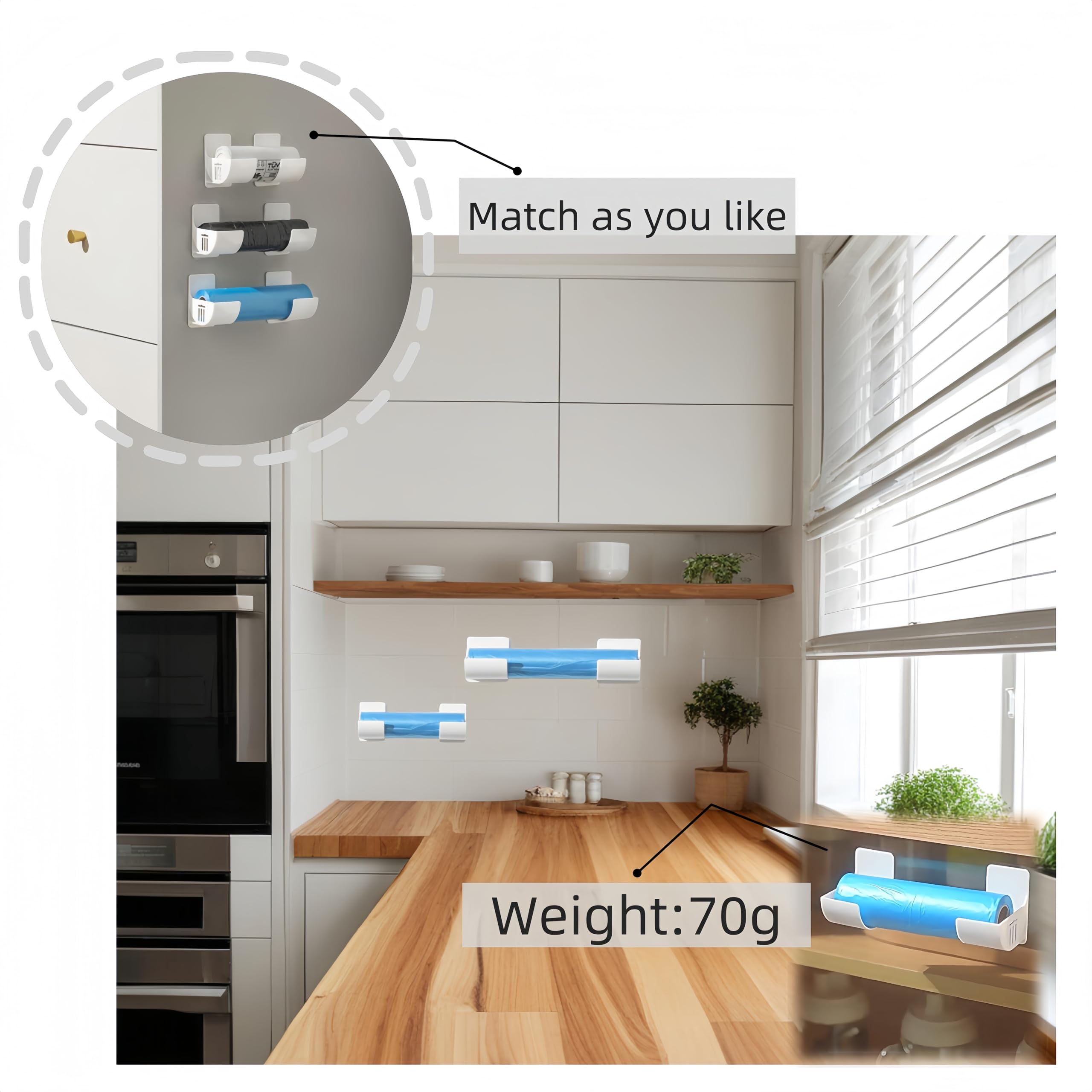 Support mural pour sac poubelle - Propreté & Hygiène chez Support Mural Sac Poubelle Lot De 8 Organiseurs De Cuisine Non Perforés - Support Mural Pour Sac Support Porte Armoire Convient pour ranger des sacs en plastique, des sacs poubelles, des films plastiques et d'autres objets. Contenu de l'emballage : vous recevrez 8 pièces (4 paires) de supports de rangement et 8 bandes autocollantes. Peut être collé sur des surfaces lisses telles que les portes d'armoire, les portes de réfrigérateur, les murs, etc. Gain de place : le support de sac poubelle pliable vous aide à optimiser l'espace dans votre cuisine, salle de bain et autres zones. Avec une capacité de poids maximale d'environ 2 kg, il offre un moyen propre et organisé de gérer les déchets et de garder votre espace de vie propre et bien rangé Longueur réglable : vous pouvez ajuster l'angle et la distance d'installation selon vos besoins, adapté pour ranger des objets de différentes longueurs avec un diamètre inférieur à 6 cm. Vous pouvez accrocher notre organisateur de sacs en plastique là où vous en avez besoin, et ainsi profiter pleinement de votre mur inutilisé en gardant le sac à portée de main Large application : le support mural peut être installé sur diverses surfaces lisses telles que les cuisines, les salles de bains, les armoires, etc. Ils peuvent vous aider à organiser et à ranger des articles pour organiser et économiser de l'espace.