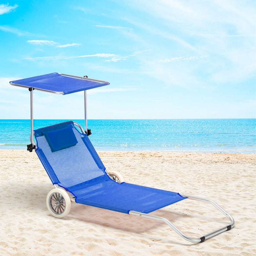Roues : Ø 21 cm / Largeur : 2,5 cm Dimensions plié : 115 x 61 cm. La construction robuste en métal, combinée à du polyester durable, assure sécurité et confort, même en cas d'utilisation prolongée. Le dossier peut être réglé sur 5 positions différentes, y compris la position allongée. ✅ Peu encombrant et multifonction : se replie rapidement à des dimensions pratiques – S'adapte à presque tous les coffres de voiture. ✅Résistante aux intempéries et durable : fabriquée à partir d'un cadre en métal robuste et de nylon résistant à l'eau, cette chaise longue est antirouille, facile d'entretien et prête pour de nombreux étés. Dimensions Dépliées 150x61 Cm Chaise Longue Pliable Avec Toit Aluminium Et Textilène Rouge - Chaise Longue - Transat Chaise Réglable 5 Positions Jardin ✅ Transport facile grâce aux grandes roues : fini le transport lourd ! Un compagnon durable pour toutes les saisons de plein air. Dimensions dépliée : 150 x 61 cm (avec roues) Hauteur d'assise : environ environ 12,5 cm. ✅ PROTECTION DU SOLEIL AVEC TOIT SOLEIL RÉGLABLE : le toit pare-soleil intégré et réglable protège des rayons directs du soleil – Idéal pour les journées chaudes au bord du lac ou de la plage. Chaise longue de jardin, Chaise longue pliable, Chaise de plage, jusqu... Cette chaise longue pliable pratique avec roues et pare-soleil réglable est le choix parfait pour la plage, le jardin ou le camping. Dossier : 50 cm, 5 positions (17/30/40/50/57 cm) Toit pare-soleil : 52 × 52 cm. Tout le monde trouve sa position parfaite, de l'enfant à la grand-mère La protection solaire mobile, l'oreiller doux et les grandes roues offrent un maximum de flexibilité et de confort. Bain de soleil chaise longue rouleaux toit 917019 - Conforama Casaria Chaise Longue De Plage Crête Orange Transat Pliable Chariot De Transport Avec Pare Soleil Reglable Camping Voyage 95888852 Matériau : métal, polyester, plastique Inclus : appui-tête 24 × 14 cm, sac de rangement 30 × 38 cm