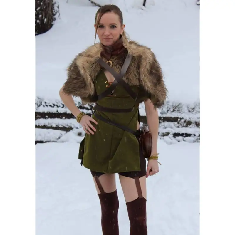 Confort en fausse fourrure de qualité supérieure : fabriqué à partir de fausses fourrures douces, il offre chaleur et confort tout en conservant une apparence luxueuse, idéal pour un port prolongé lors d'événements ou de reconstitutions. Description du produit Description : Ce collier en fausse fourrure de châle viking combine un design viking médiéval authentique avec un confort moderne pour créer un accessoire de cape viking remarquable pour les femmes., ., Fabriqué à partir de fausses fourrures douces de première qualité, il offre de la chaleur et une texture luxueuse tout en conservant l'esthétique robuste essentielle aux accessoires de costume Viking., ., Doté d'une fermeture à broche fonctionnelle et décorative, ce col châle assure un ajustement sûr et réglable, améliorant la durabilité et la facilité d'utilisation pour des événements prolongés comme les fêtes d'Halloween, les reconstitutions ou les conventions de cosplay., ., Polyvalente et réutilisable, cette cape Viking classique complète parfaitement une gamme de vêtements pour femmes de costumes Viking, offrant un look barbare d'inspiration historique avec une qualité contemporaine., ., Que vous vous habilliez pour des festivals à thème ou que vous ajoutiez une pièce accrocheuse à votre collection de capes Viking, cet accessoire met en valeur à la fois le style et la praticité, créant une expérience de costume immersive tout en renforçant l'authenticité et le confort de votre tenue., ., Caractéristiques :., ., -Couleur : Marron foncé., ., -Matière : Polyester., ., -Taille : 115x30 cm/45,3x11,8 pouces., ., Remarque : Mesure manuelle, veuillez permettre de légères erreurs de taille., ., Les couleurs peuvent exister de légères différences en raison des différents écrans., ., Forfait comprenant 1 * Châle Viking Avertissement De Sûreté Avertissement: Cet accessoire vestimentaire, éloignez-le du feu et des risques d’étouffement. Accessoire de costume polyvalent : conçu comme une cape viking pour femme, il s'associe parfaitement à divers costumes et accessoires vikings, ajoutant une touche barbare distinctive qui complète votre ensemble. Femmes Écharpe en Fausse Fourrure,90cm Echarpe Fausse Fourrure Dames Châle Col en Fourrure d Stable et réutilisable : construit avec des matériaux stables qui résistent à de multiples utilisations, cet accessoire de cape Viking est parfait pour Halloween, le cosplay, les foires de la Renaissance ou les soirées à thème, offrant une valeur et un style durables. Design Viking authentique : conçu avec une attention particulière à l'esthétique historique des Vikings, cet accessoire de col châle en fausse fourrure améliore votre costume médiéval avec un look réaliste et riche, parfait pour le cosplay et Halloween Tenue Renaissance Fête Châle Viking, Col En Fausse Fourrure, Costume Viking Médiéval Pour Col Médiéval Femme Cosplay Châle en fausse fourrure pour costume de cosplay, mariage viking, GN ou costume d'Halloween. Ce châle peut être assorti à de nombreux costumes différents, tels que viking, barbare, royaume des bois, homme des cavernes, homme de la montagne, etc., pour accessoiriser n'importe quel look
