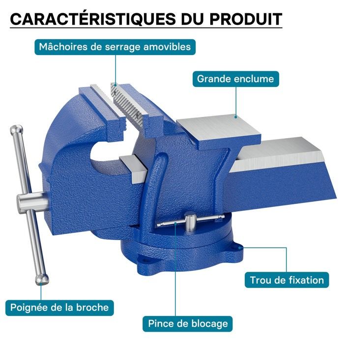 [Praticité et ergonomie] – Doté d’un mécanisme à vis précis, cet étau d’atelier permet un réglage facile de l’ouverture de la mâchoire, s’adaptant à diverses tailles de pièces. Les pièces longues peuvent être serrées à la fois horizontalement et verticalement. Achetez Wiltec Étau d'atelier & Enclume – en Acier – Mâchoire de 125 mm, profondeur de serrage de 80 mm – Avec butée – pour fixation sur Établi Investissez dans cet étau pour bénéficier d’un serrage précis, d’une robustesse exceptionnelle et d’une utilisation sécurisée et pratique. Son design compact et sa capacité de serrage robuste en font un outil essentiel pour les travaux nécessitant une grande précision et une stabilité maximale [Flexibilité et précision] – Avec une largeur de mâchoire de 125 mm et une profondeur de serrage de 80 mm, cet étau offre une grande flexibilité pour divers travaux d’usinage. Achetez Machines D'atelier en vente en 2023 Wiltec Boutique [Sécurité accrue] – La butée de serrage intégrée est un dispositif de protection essentiel qui empêche la partie arrière de la mâchoire de tomber lors de l’extension maximale. Sa conception compacte et sa capacité de serrage robuste en font un outil essentiel pour les travaux nécessitant précision et stabilité Enclume étau Fixe Étau D'atelier & Enclume - En Acier - Mâchoire De 125 Mm, Profondeur De Serrage De 80 Mm Avec Butee Pour Fixation Sur Wiltec 98230385 Cheville Placo [Robustesse et durabilité] – Fabriqué en acier de haute qualité, l’étau d’atelier Wiltec assure une résistance optimale aux conditions de travail les plus exigeantes, garantissant une longue durée de vie et une performance fiable même en utilisation intensive Étau de table polyvalent et robuste en acier La base de fixation pré-percée permet un montage rapide et facile sur l'établi, de sorte que l'étau est immédiatement prêt à l'emploi.