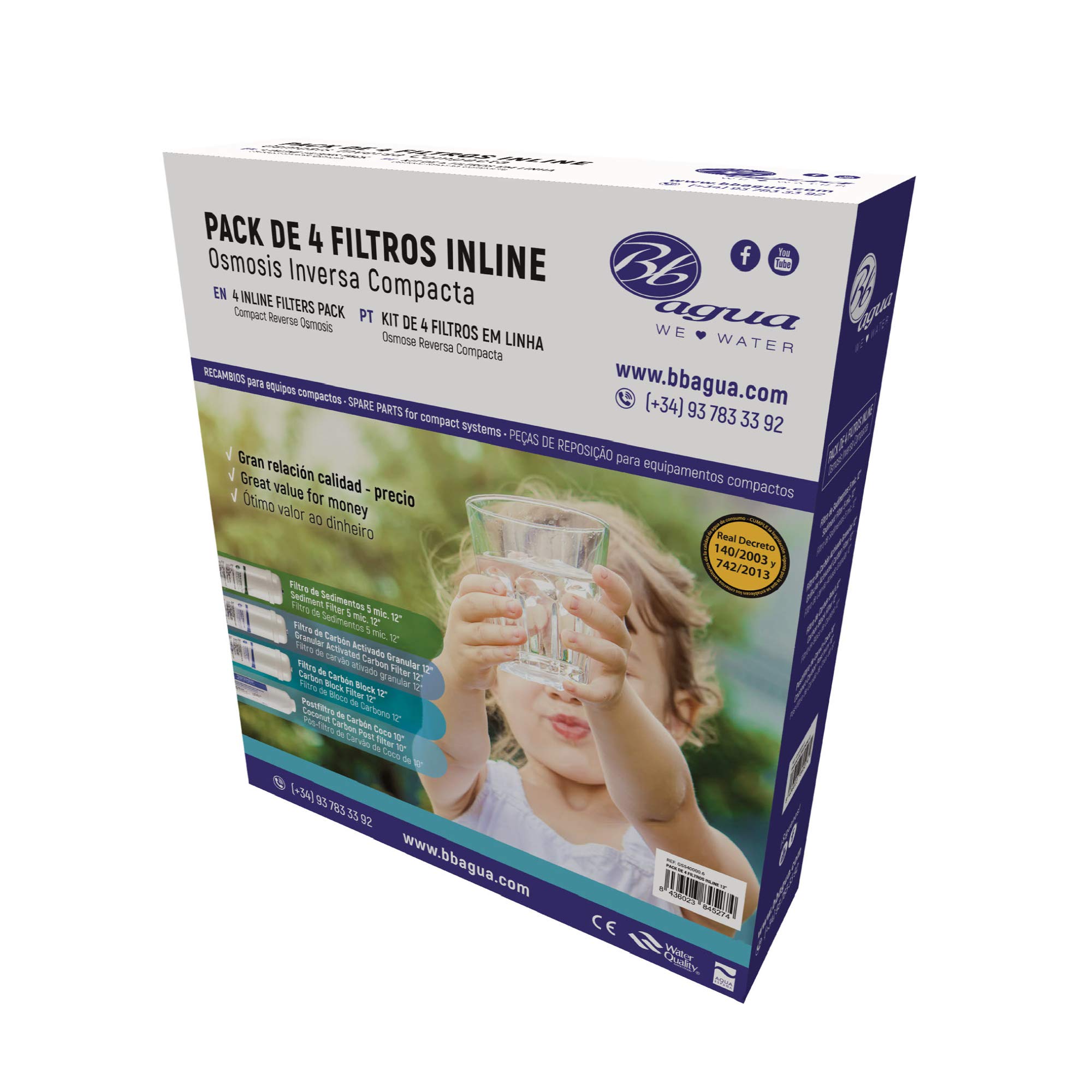 Produit 440 Litres d'eau osmostisée par jour. Membrane 100 GPD Pack de 3 filtres pour Osmose Inverse Standard. 1 filtre à sédiments, 1 filtre à charbon GAC et 1 filtre à charbon bloc. Avec la garantie Bbagua Optimisez les performances de votre système d'osmose inverse avec notre pack complet de filtres, soutenu par la garantie de qualité de Bbagua. La membrane d'osmose inverse est la pièce la plus importante de votre équipement d'osmose inverse. Il vient d'éliminer le chlore, les métaux lourds, les dioxines et les odeurs par adsorption, protégeant la membrane des petites particules. 1 cartouche 10 de charbon GAC. 1 cartouche 10 de charbon bloc. Membrane d'osmose inverse 100 GPD pour osmoseur Le pack contient également trois cartouches de filtre essentielles pour garantir une eau de qualité optimale. MEMBRANE FILTRE À eau à osmose inverse 150 gpd - membrane ro tfc-2012 Filtre Osmoseur Membrane 100 Gpd+Pack De 3 Filtres Pour Osmose Inverse Standard. 1 Membrane 100 GPD 440 Litres Jour 1 cartouche 10 de sédiments 5 microns, pour l'élimination des solides en suspension, terre, boue et sable d'une taille supérieure à 5 microns. De plus, la cartouche de charbon GAC élimine efficacement le chlore, les matières lourdes, les dioxines, les pesticides et les odeurs indésirables par adsorption, tandis que la cartouche de charbon bloc ajoute une couche supplémentaire de protection en filtrant le chlore, les métaux lourds, les dioxines et les odeurs, garantissant ainsi que seule l'eau la plus pure atteint votre robinet. Avec ce pack de filtres et de membrane de haute qualité, vous pouvez être sûr que votre système d'osmose inverse fonctionnera de manière optimale, fournissant une eau propre, sûre et exempte d'impuretés pour toute votre famille. Profitez dès maintenant de cette opportunité pour améliorer la qualité de l'eau dans votre maison avec la garantie de Bbagua ! Membrane 100 GPD (Production estimée à 100 gallons par jour) pour les équipements d'osmose inverse domestiques.