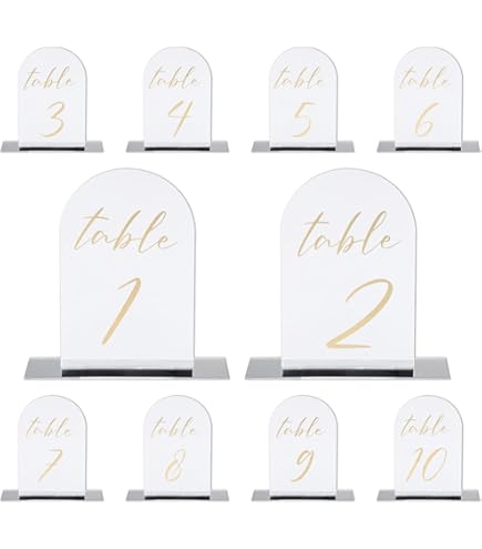 Les numéros de table personnalisés en acrylique ou en plexiglas représentent une solution élégante et contemporaine pour la mise en place de votre table le jour du mariage Cela rend les panneaux de table réutilisables, offrant une flexibilité dans la conception et l'affichage, sans avoir besoin de remplacements fréquents, tout en conservant leur attrait esthétique et leur praticité. Supports Table Mariage Réutilisables Numéros De Table En Plexiglass Avec Support En Bois | Sublimez Vos événements Décoration | Amazing Panneaux Acrylique Incurvés 10x14cm Ils sont parfaits pour répondre à vos besoins de décoration, que ce soit pour les mariages ou la décoration de table. Ils ajoutent à la fois charme et praticité à n'importe quel environnement. Veuillez retirer le film avant utilisation. Contenido del paquete: Recibirá 8 placas redondas de acrílico (10 x 10 cm) y 8 bases de madera a juego (6 x 2,5 x 1 cm). Perfectas para bodas, decoración de mesas o eventos Ensemble de numéros de table de mariage et de bases en acrylique transparent rectangulaire pour Même si l'encre a séché, elle peut être retirée rapidement, restaurant une surface lisse et impeccable. Bricolage : parfait pour les projets de bricolage, vous pouvez utiliser des marqueurs ou d'autres outils d'écriture pour personnaliser ces tableaux acryliques transparents en les écrivant, en dessinant ou en les décorant comme vous le souhaitez, faisant de chaque tableau acrylique une pièce unique et personnalisée. Réutilisable : les panneaux de table en acrylique présentent un design incurvé élégant associé à des bases en bois, offrant à la fois style et fonctionnalité.