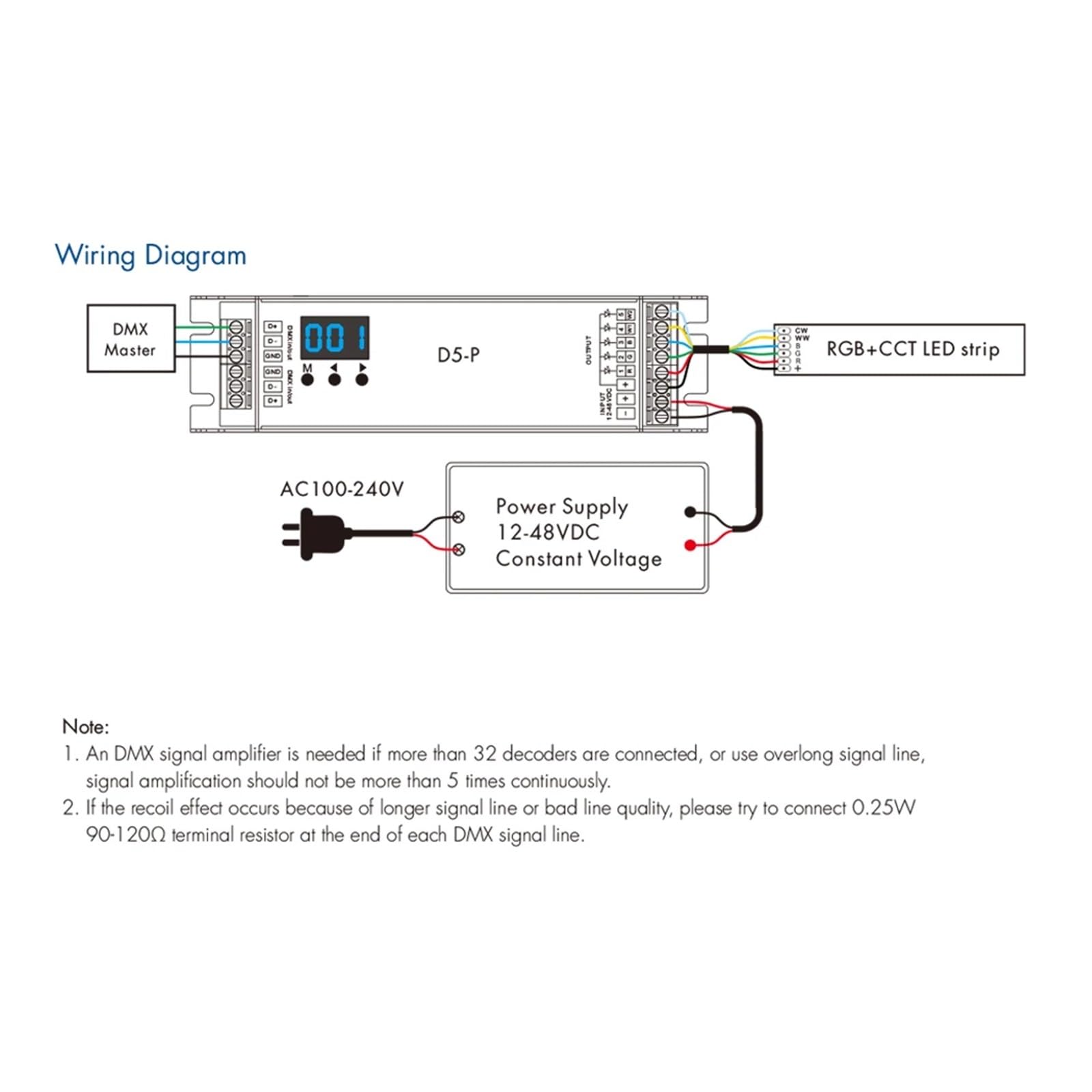 DMX 512 & RDM décodeur, 5 canaux 6A chacun, tension 12-24V DC Décodeur LED 12V 24V 48V Décodeur 5CH DMX 512 Et RDM DC 12V 24V 48V 20,5 A RGBCW, Contrôleur LED, Affichage Numérique, Tension Constante Pour Bandes Lumineuses LED RGB + CCT Décodeur DMX512 RDM Constant Voltage Interrupteurs variateurs d'intensité La fonction RDM permet l'intercommunication entre les hôtes DMX et les décodeurs. Courbe de gradation logarithmique ou linéaire disponible. Décodeur DMX512 3CH 24A contrôleur de bande RGB DM... – Grandado Le D5-P dispose d'un port de signal DMX terminal vert et le D5-E dispose d'un port de signal DMX RJ-45., Tension d'entrée : 12 V-48 V CC. Décodeur DMX512 & RDM 12-48V DC RGBW 4 Canaux - Ledkia Courant d'entrée : 20,5 ATension de sortie: 5x(12-48)VDCCourant de sortie : 5CH, 4A/CHPuissance de sortie: 5x(48-192)WType de sortie : tension constante Des options d'échelle de gris 16 bits (65 536 niveaux)/8 bits (256 niveaux) sont disponibles.