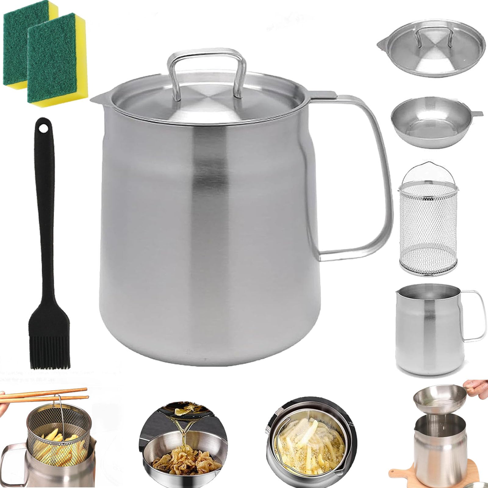 Filtration efficace de l'huile : le réservoir de filtre à huile polyvalent de grande capacité en acier inoxydable 304 dispose d'un filtre à maille fine intégré qui capture efficacement la saleté et les débris. Filtre à huile en acier inoxydable. Pot de filtre à huile en acier inoxydable avec passoire : avec une capacité généreuse, ce pot à huile peut contenir de grandes quantités d'huile, ce qui le rend idéal pour la friture, la poêle et d'autres méthodes de cuisson qui nécessitent beaucoup d'huile. Le design du bec verseur assure un versement facile et propre de l'huile sans éclaboussures, tout en conservant la propreté. Contenu du paquet : Couvercle anti-poussière + filtre + filtre anti-fuites + corps de marmite. Pot de Filtre à Huile Multifonctionnel 2 en 1 en Acier Inoxydable Facile à utiliser : friteuse à huile de grande capacité en acier inoxydable et tasse filtrante. La passoire à huile dispose d'un couvercle et d'une poignée pratiques, empêchant l'accumulation de poussière et de taches et facilitant la manipulation. Sa capacité de 1,5 l ou 2 l le rend idéal pour la friture, la poêle et d'autres méthodes de cuisson à forte intensité d'huile. Huile acier inoxydable Modèle... Pot De Filtre D'huile En Acier Inoxydable 2L, Pot De Filtre D En Acier Inoxydable 2l Pot De Filtre Dhuile 2 En 1 Economiseur De Graisse De Bacon Avec Filtre Panier A Friture Filtre Bols De Melange Et Clip 91963260 Pot de filtre à huile multifonction de grande capacité : le pot de filtre à huile en acier inoxydable combine 3 fonctions en un. - Matériau : acier inoxydable 304., Utilisation : cuisine., 1., Pot de filtre à huile multifonctionnel, filtration et stockage, complété dans un seul pot, ne craint pas de gaspiller de l'huile comestible., 2., Mini friteuse à huile de cuisine et tasse filtrante, petite friteuse, peut être utilisée pour frire des pépites de poulet, des frites et divers autres aliments, avec panier frit., 3., Le panier à frire est livré avec une poignée, ce qui vous permet de le soulever plus facilement., 4., Le design du bec de guidage n'est pas facile à accrocher l'huile, plus lisse et plus facile à verser de l'huile., 5., Largement utilisé dans une variété de cuisinières : cuisinières à gaz, cuisinières électriques en céramique, cuisinières électriques et à induction, etc. Récipient à graisse, filtre à huile en acier inoxydable, avec poignée couvercle anti-poussière, pour frire, huile de cuisson. En 1 fois 2L : 12,5 x 14 x 16 cm. Ne réagit pas avec les huiles de cuisson ou les aliments. La mini friteuse à huile et la tasse filtrante sont le complément parfait à votre cuisine. Le panier filtrant est également livré avec une petite poignée pour un levage facile.